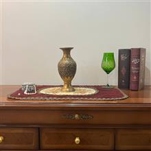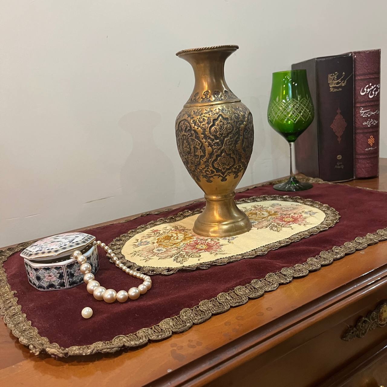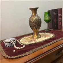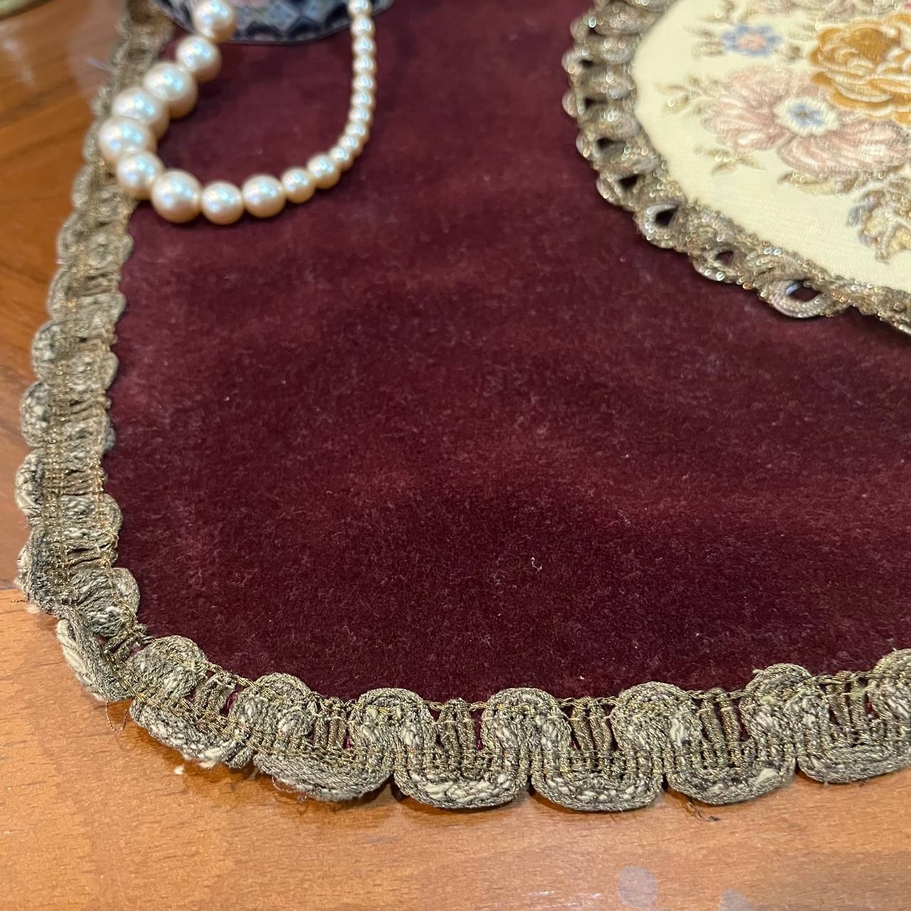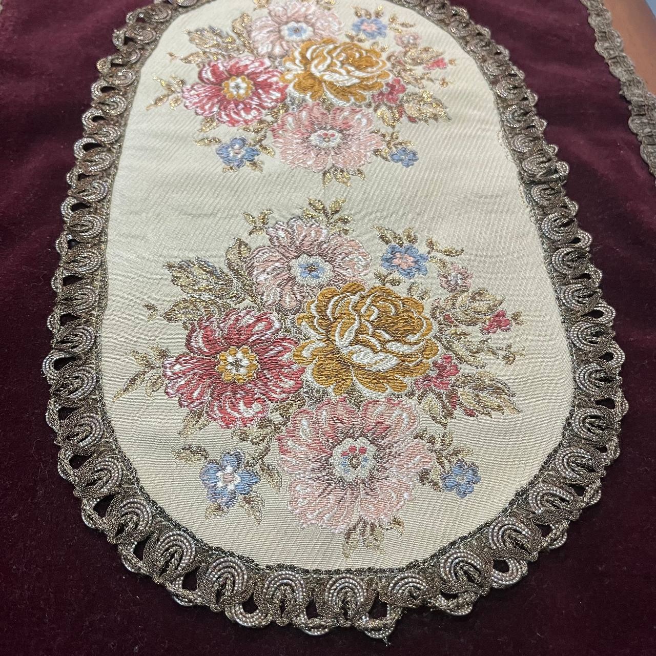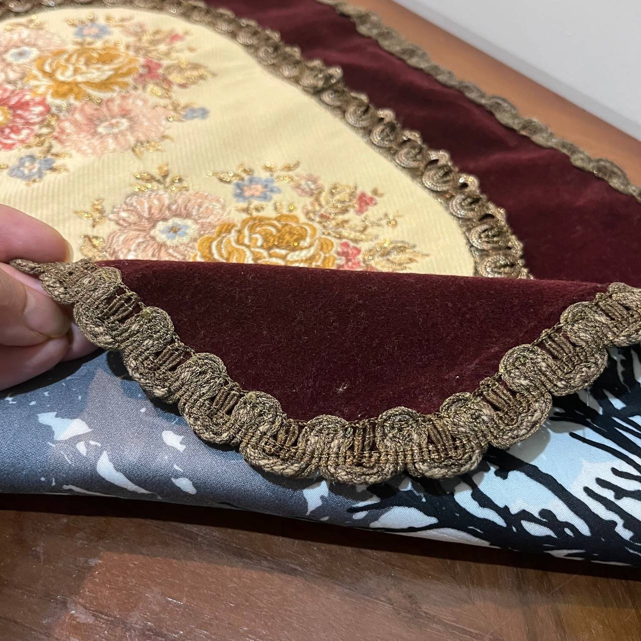 رومیزی قدیمی خارجی ترکیب مخمل زرشکی و پارچه زری دار و گلدار