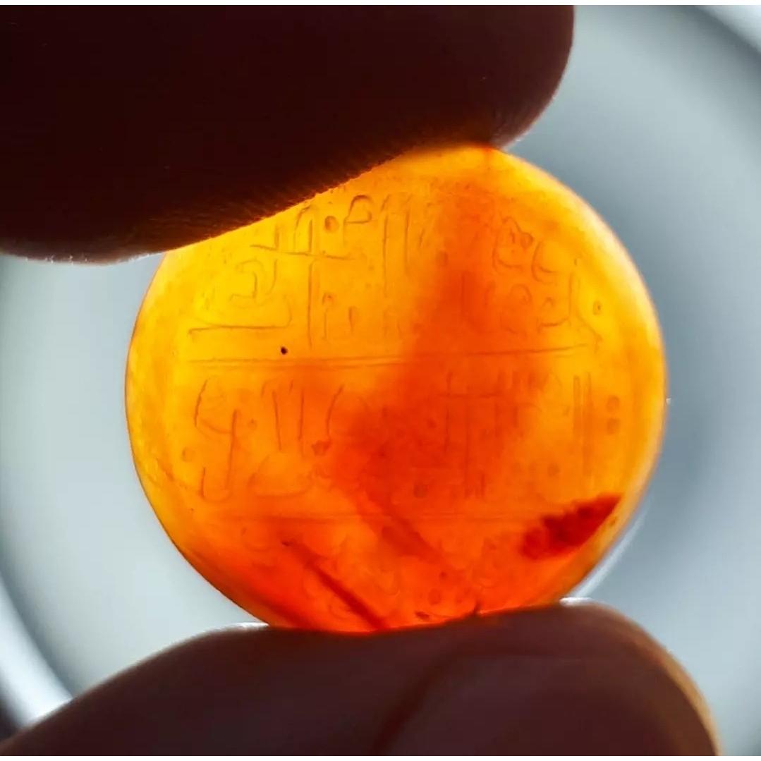 نگین عقیق یمن خط کمانچه صفوی استاد میرمحمدخان یزدی باذکرنادعلی ذات وکهنسال وکلکسیونی با امضا