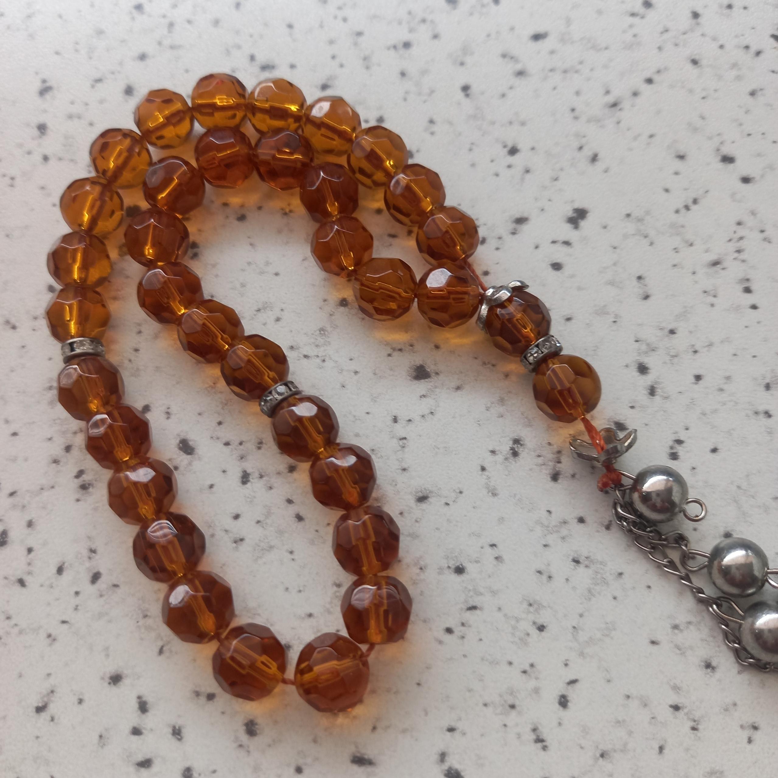 یک عددتسبیح یاقوت عسلی 33 دانه زیبا