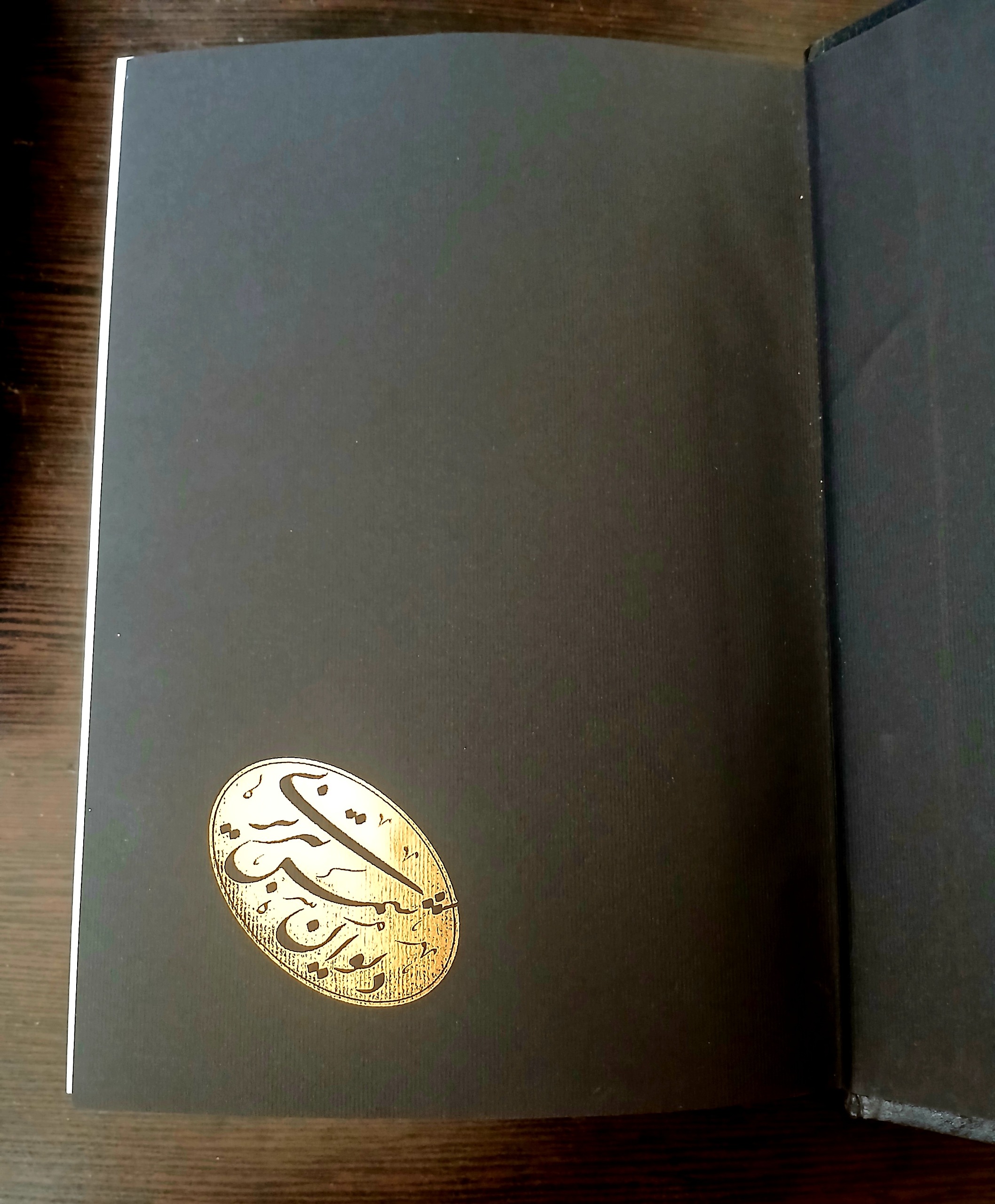 جلد گالینگور کاور دار، قطع وزیری، کاغذ سفید، و دارای قاب چوبی،