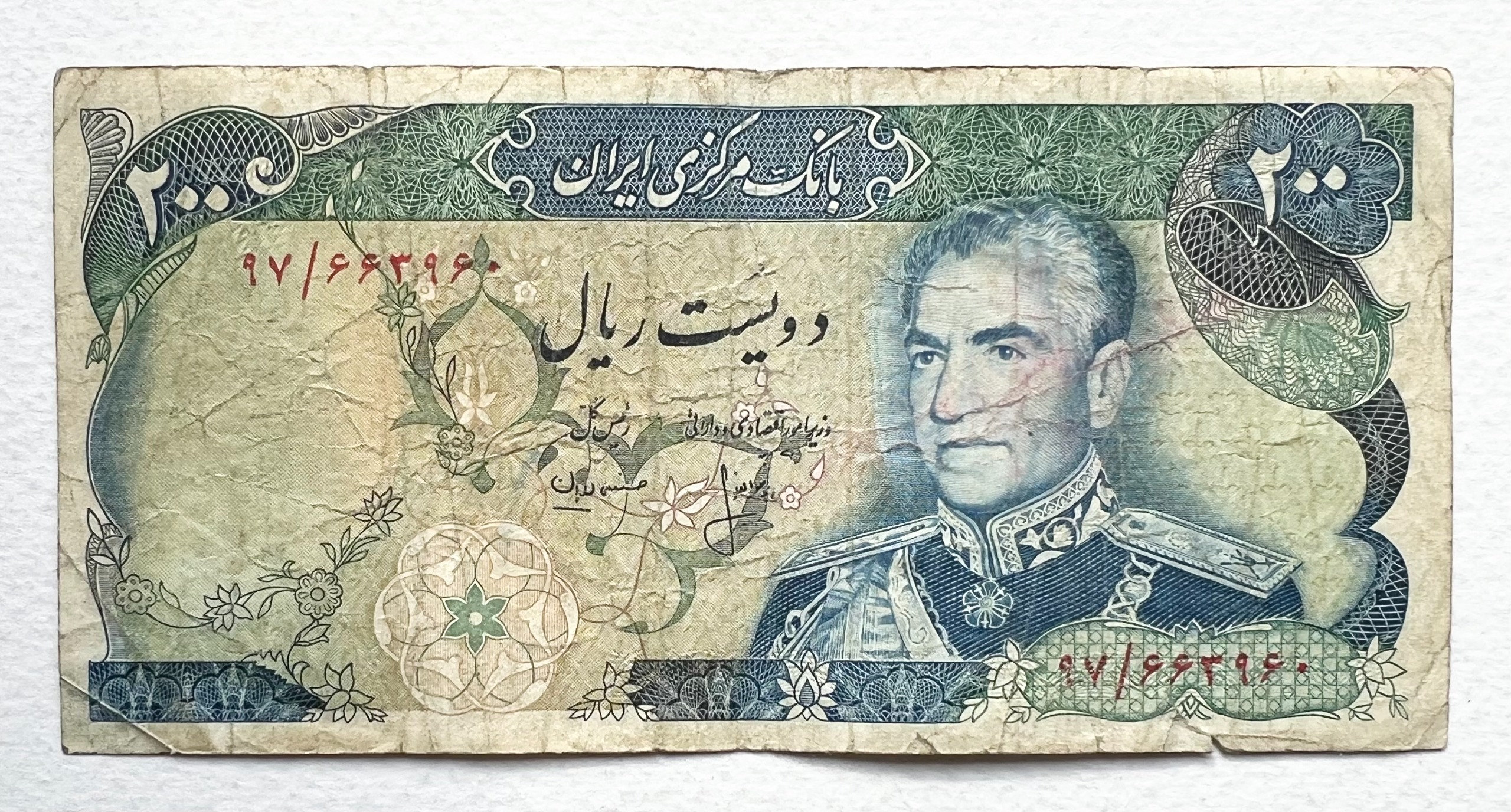 مزایده اسکناس 200 ریال پهلوی انصاری مهران خودکاری