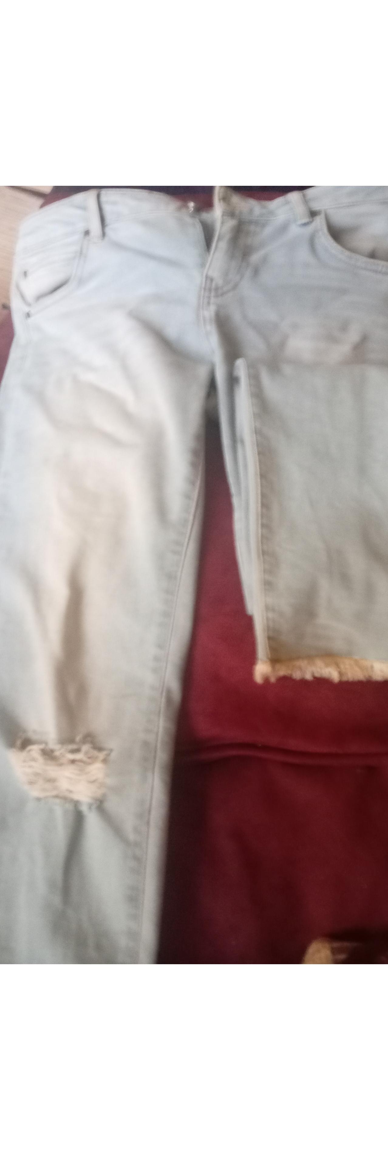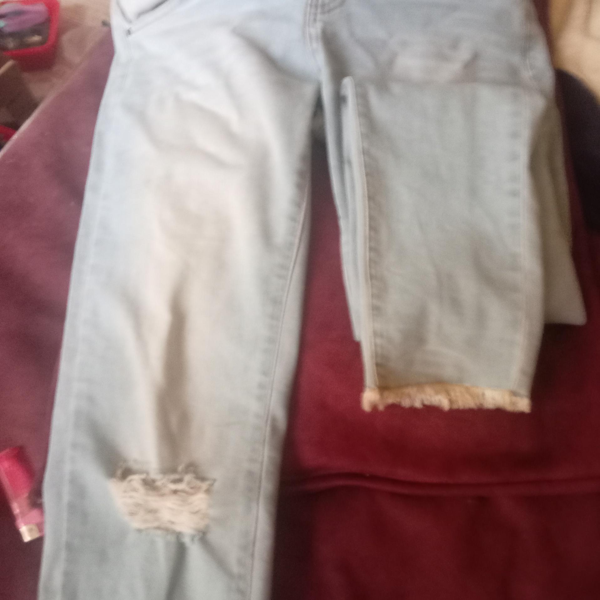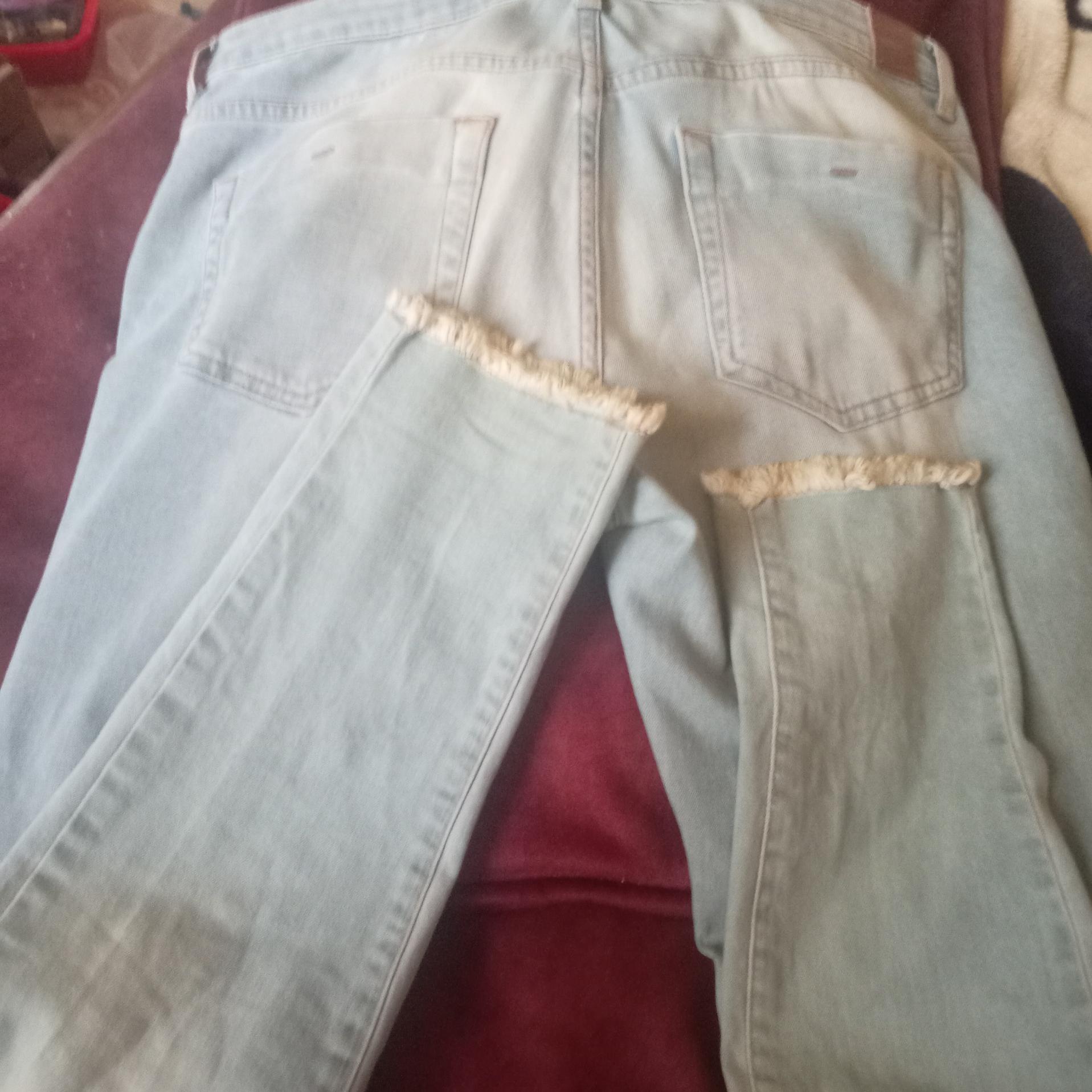 شلوار جین اسبورت مرد زن نذاره سر پا یک طرف ریش زاک طرف دیک دو بند انگشت شکاف دار کار برفی جیب ها ساده فاق ن کوتاه ن بلند سر ها پا فیت شده و ریش خورده روش زده سایز 44 ک همون حدودا 36و38 میشه برای آدم ها تقریبا وزن 55تا68 کیلو کار خارجی و آخری اش هست بخدا این قیمت تی شرت نمیدن چه برسه جنس خارجی JEANS