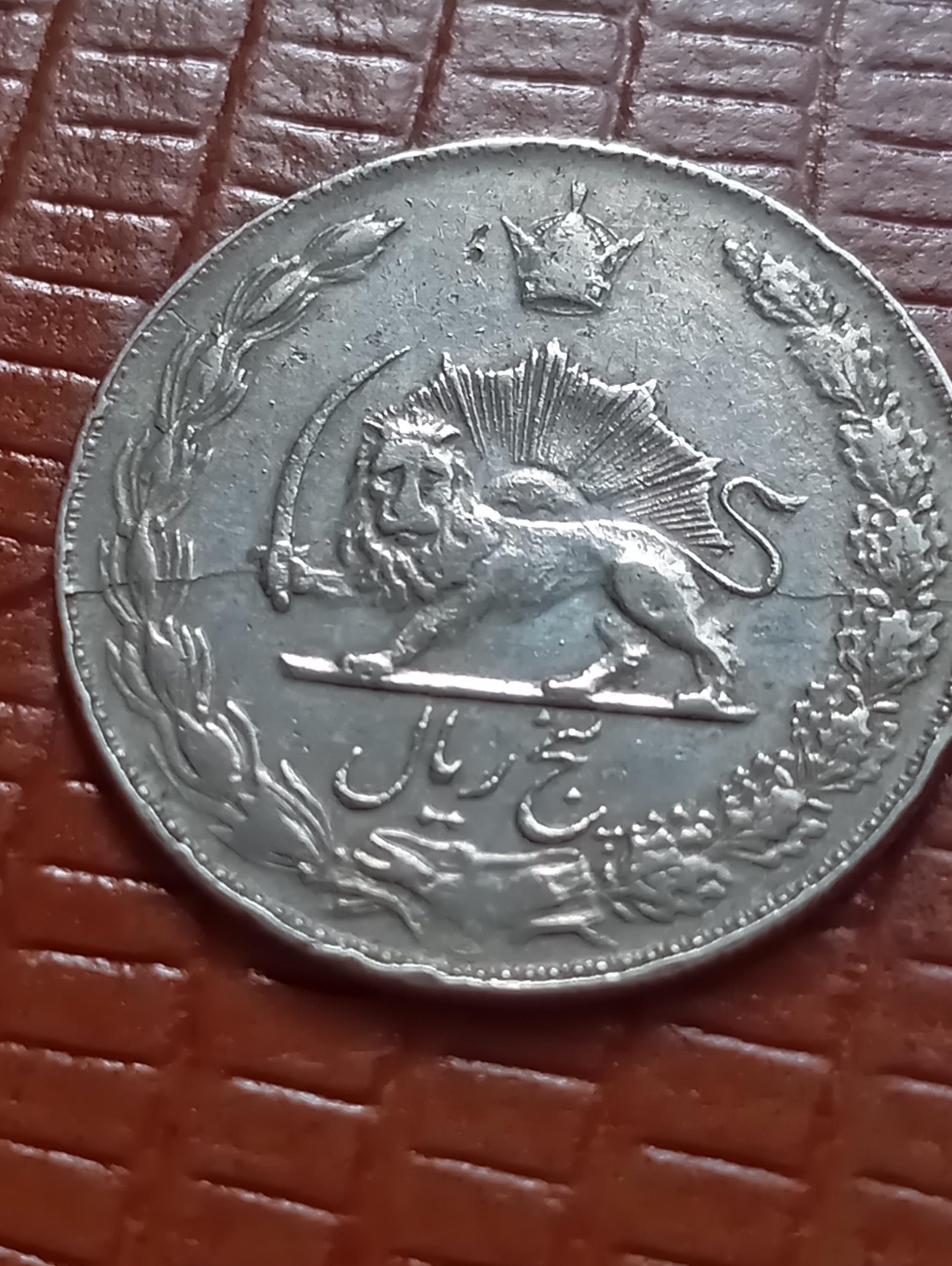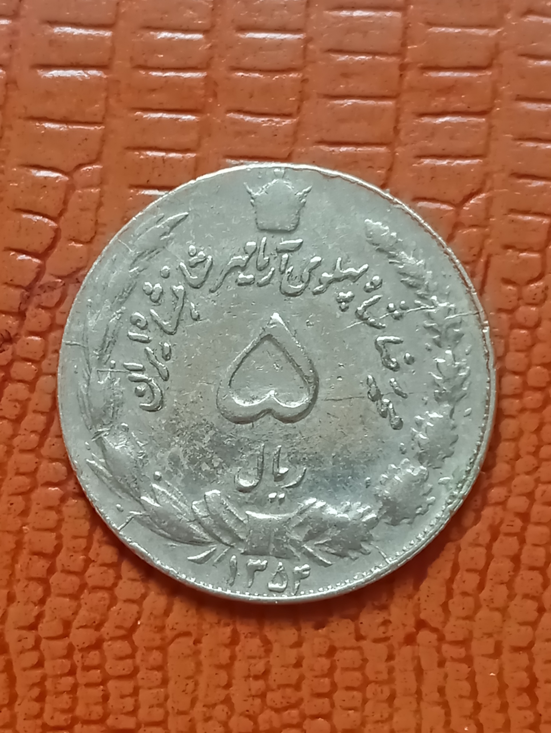 سکه5 ریال1354 ارور ترک قالب پشت روی سکه