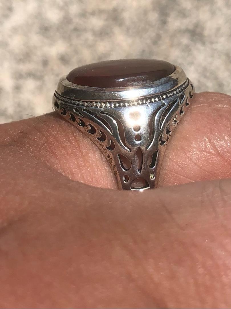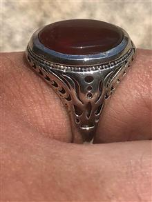 انگشتر عقیق طبیعی معدنی با رکاب نقره عیار پایین