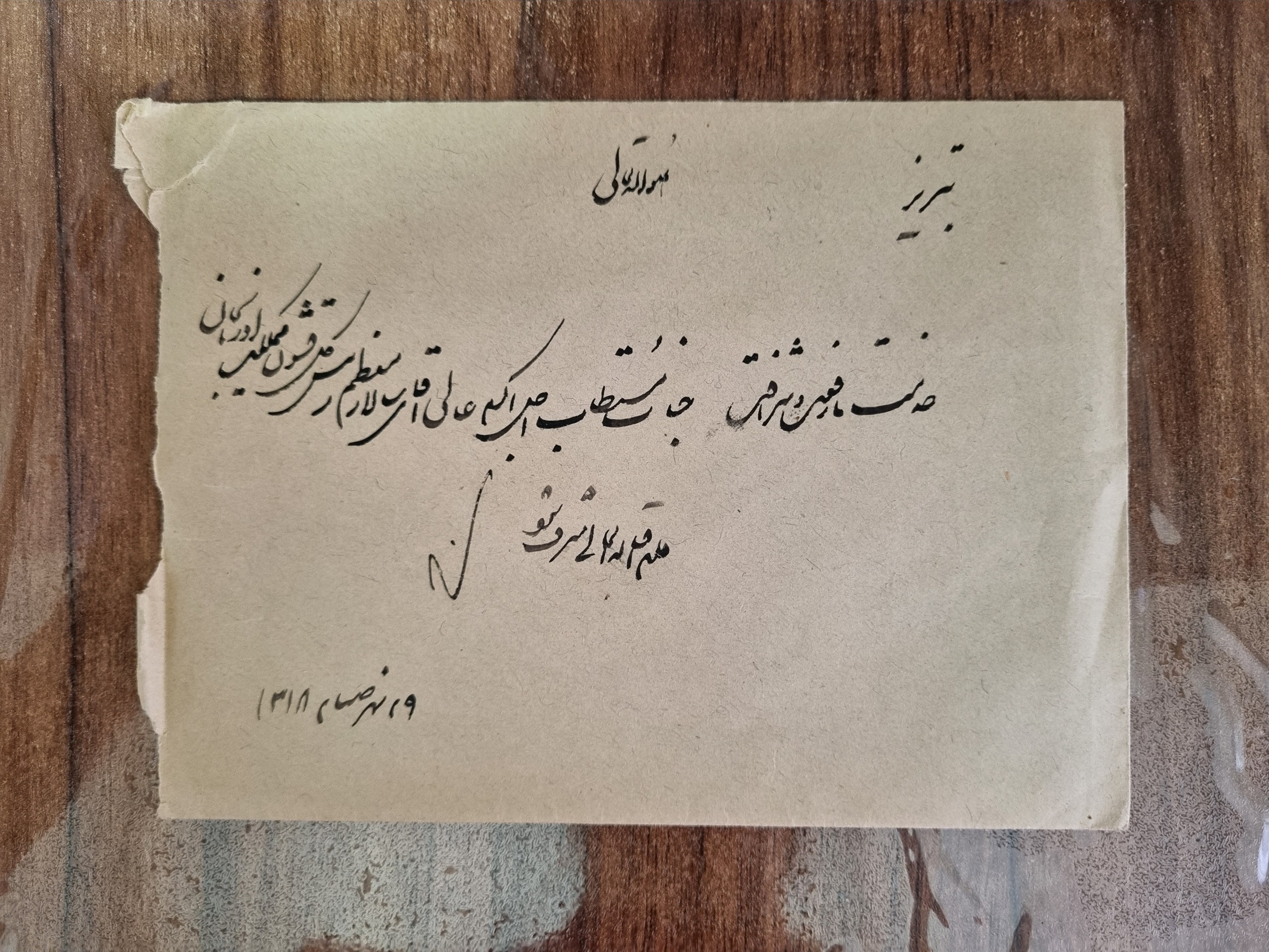 نامه و پاکت به دستخط وثوقالدوله