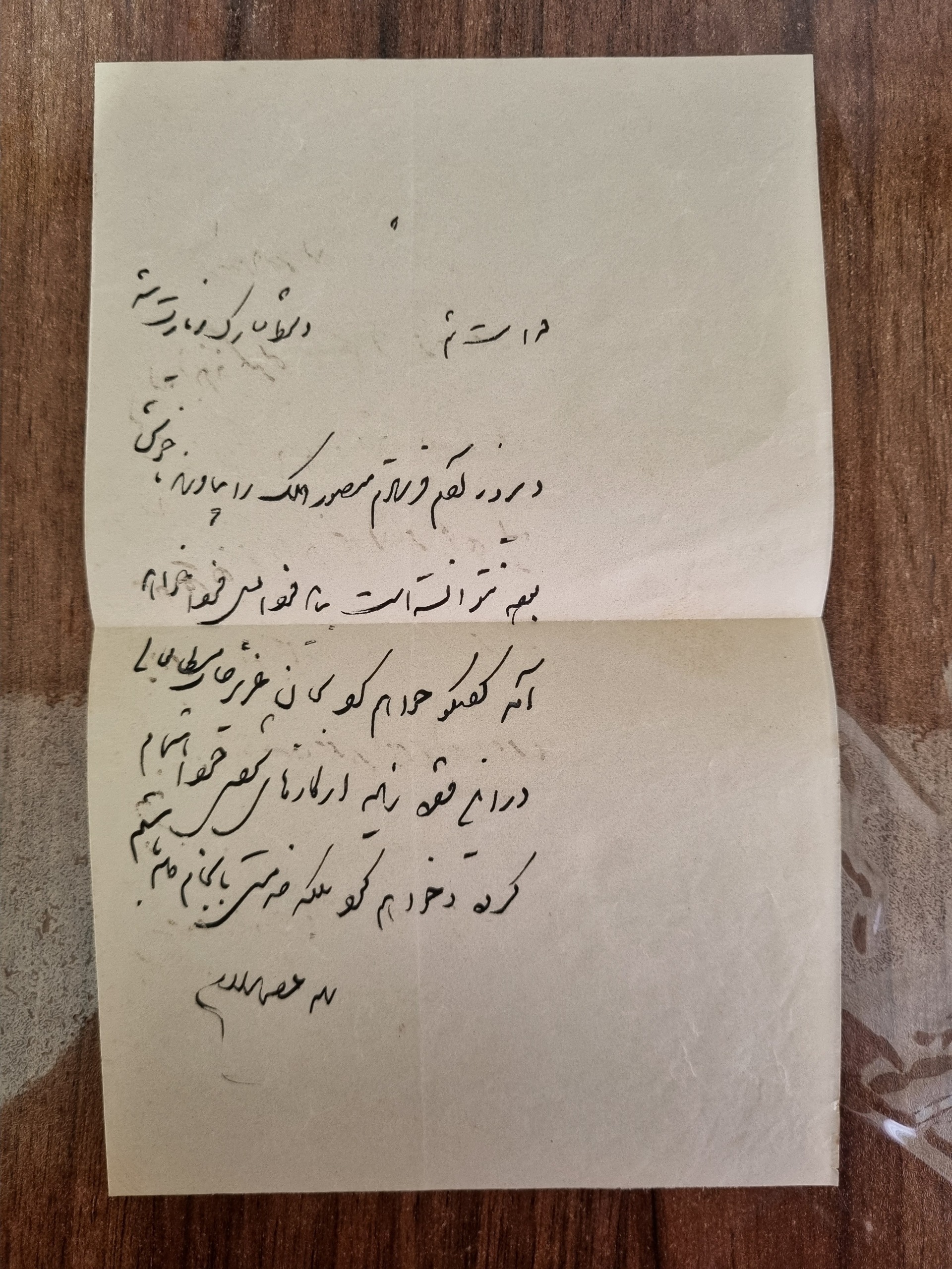 نامه با پاکت ارسالی از طرف صدق السلطنه