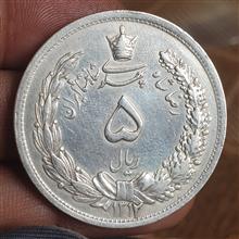 نقره پنج ریال رضاشاه تاریخ ارزشمند 1312