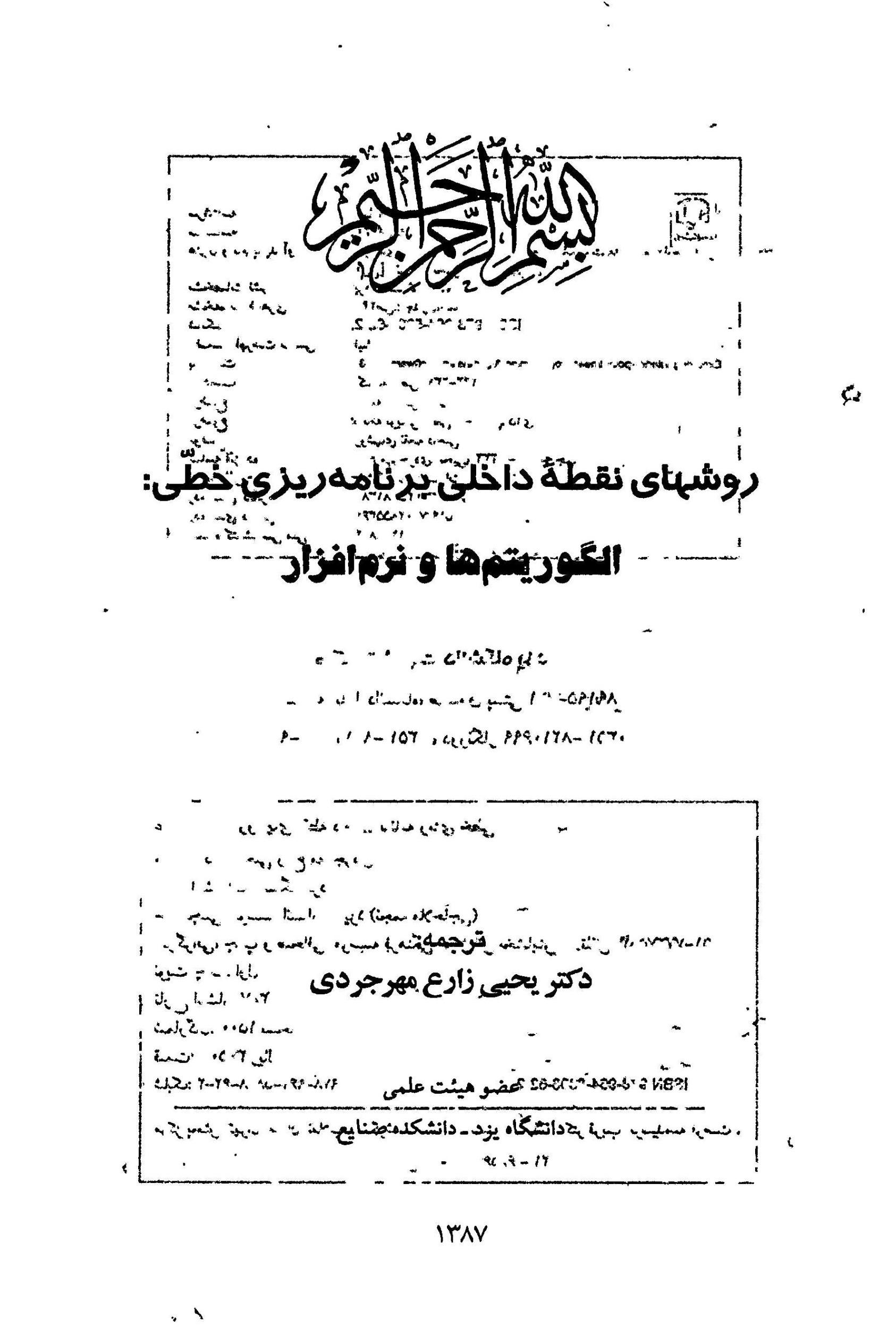 روشهای نقطه داخلی برنامه ریزی خطی : الگوریتم ها و نرم افزار