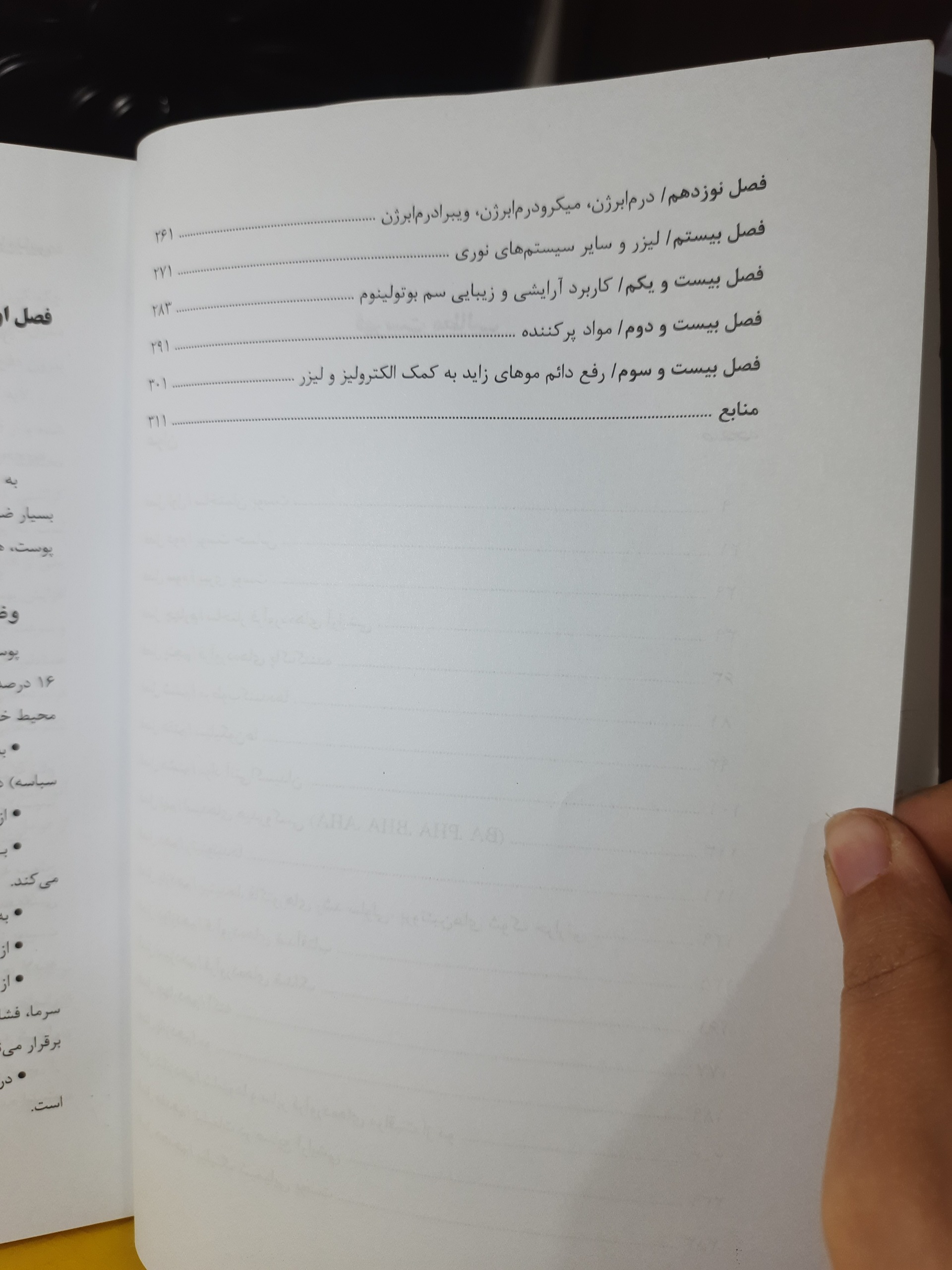 کد 1416 پوست مو زیبایی/ راهنمای فرآوردهها و تکنیکها/ از دکتر جهانمیری و ستودنیا /در 310 صفحه مصور /چاپ سال 92/جلد و صفحات سالم و تمیز میباشد/ دارای سرفصلهای بررسی ساختمان پوست پوست حساس پیری پوست فرآوردههای آرایشی پاک کننده مرطوب کننده سیلیکونها آنتی اکسیدانها هیدروکسی رتینوئیدها ضد آفتاب ضد لک آکنه مو شامپوها و موارد تخصصی دیگر