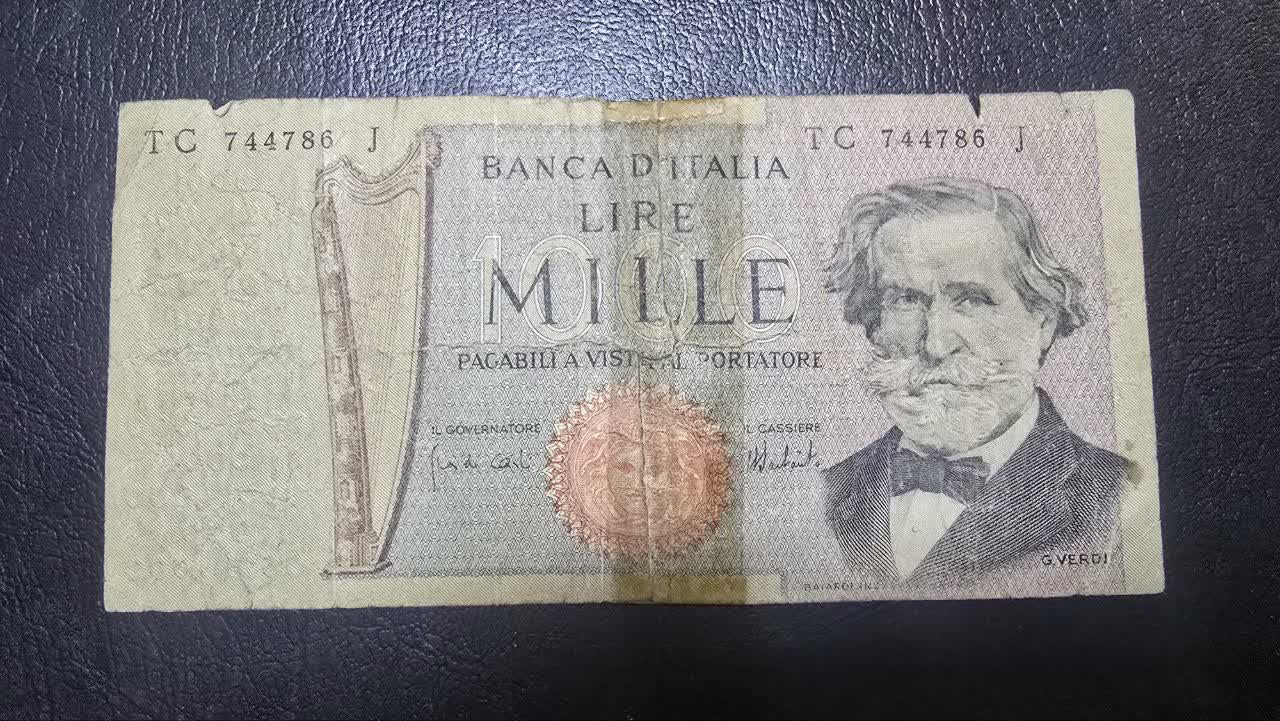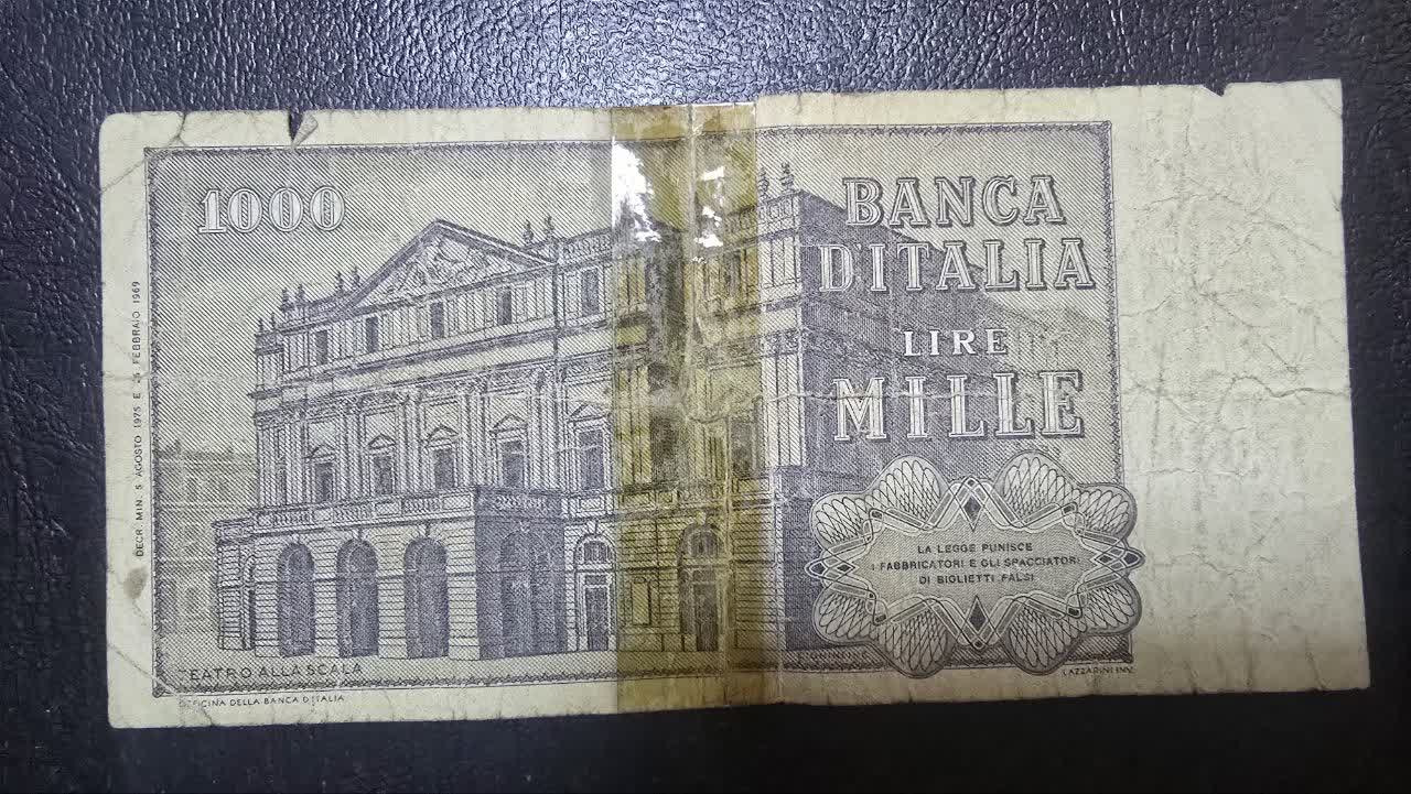 اسکناس 1000 لیر ایتالیا 1969 چسب خوردگی دارد