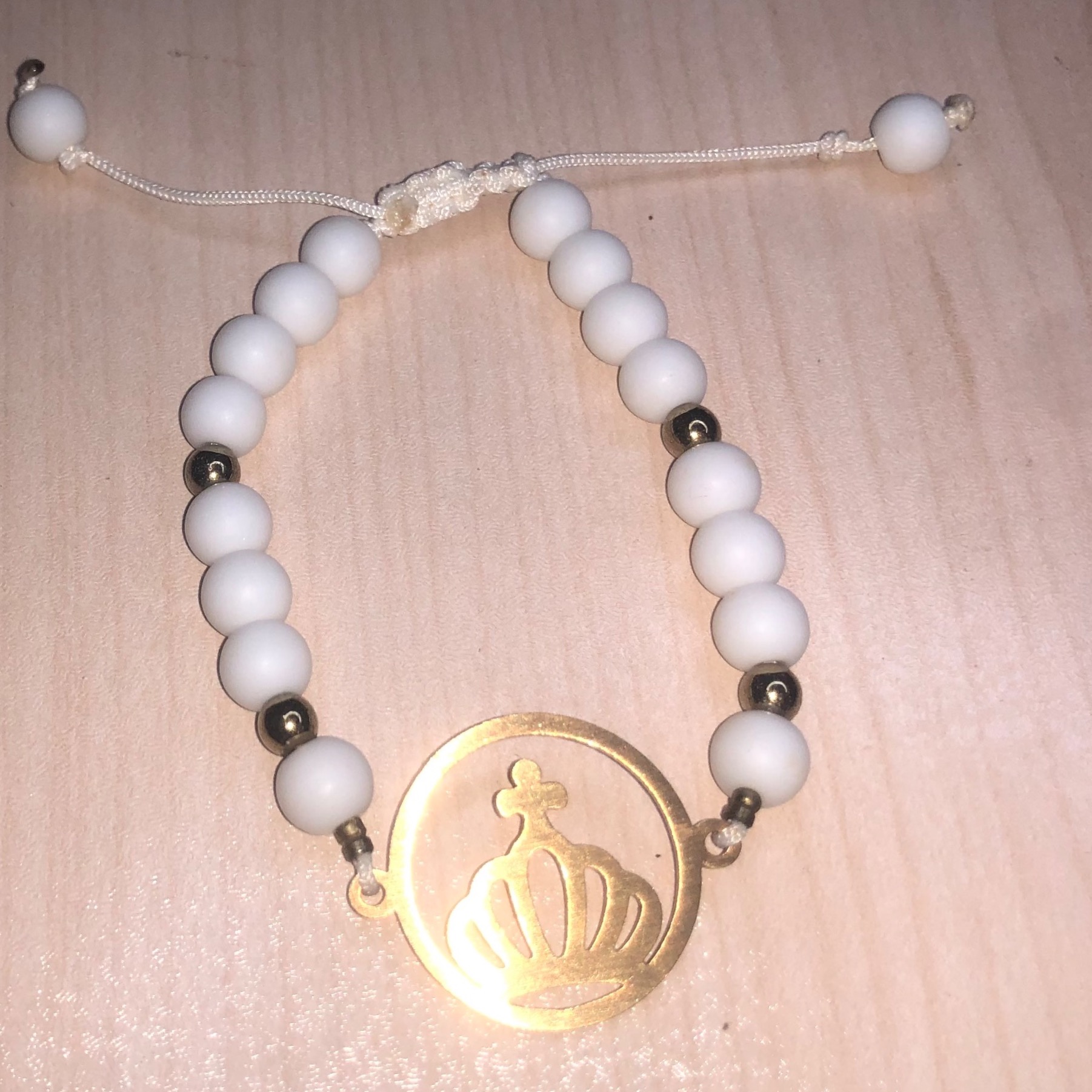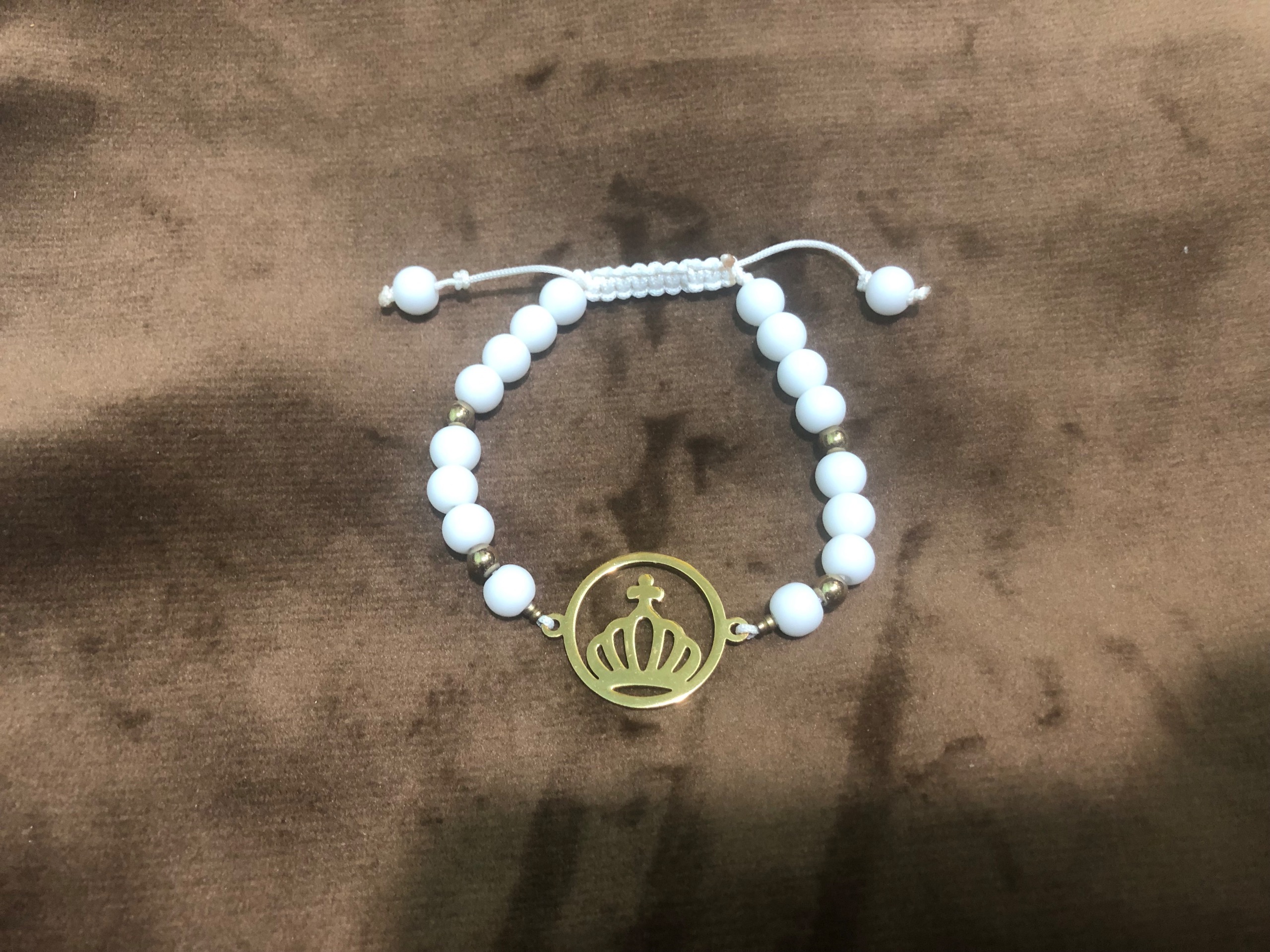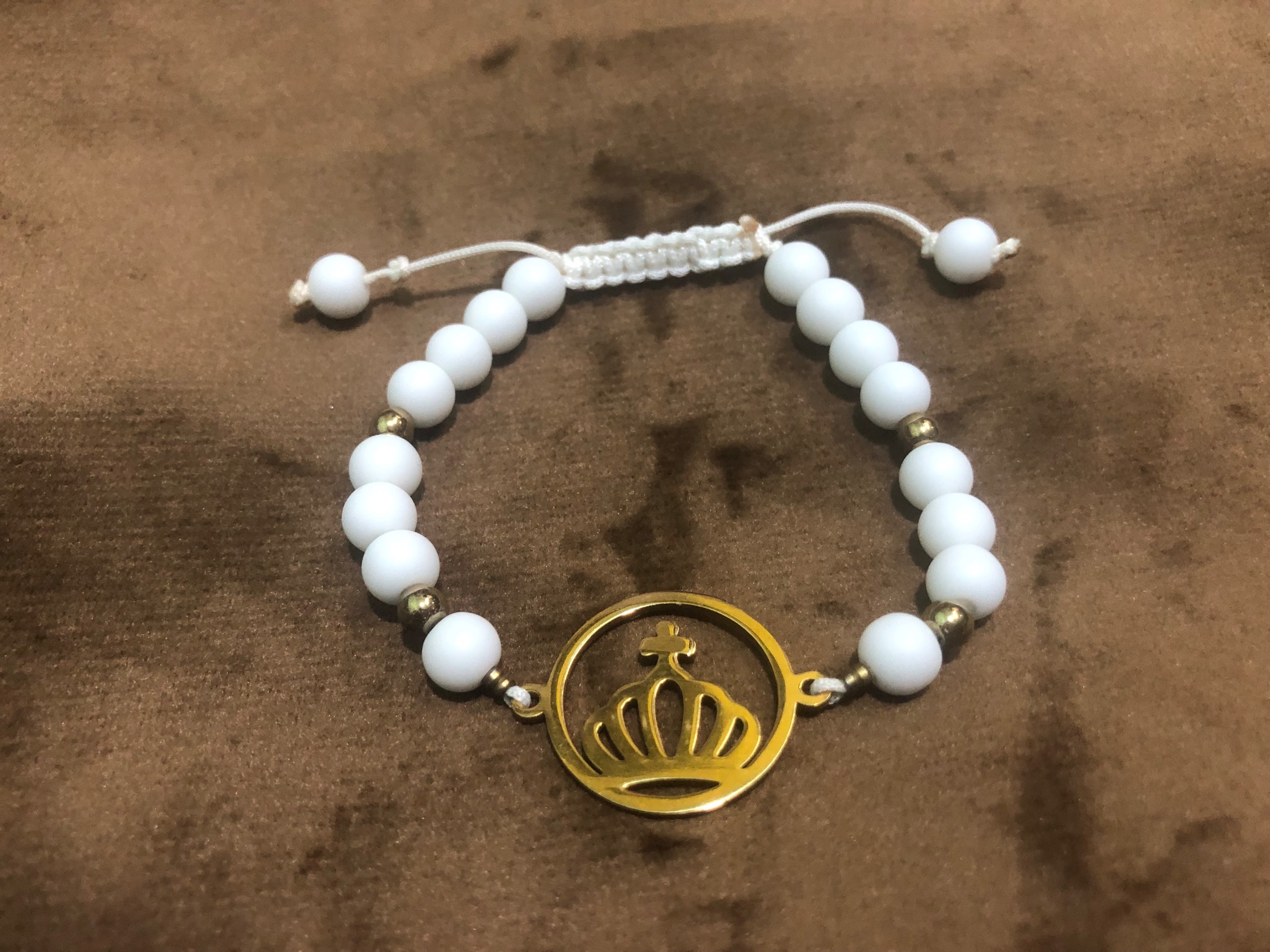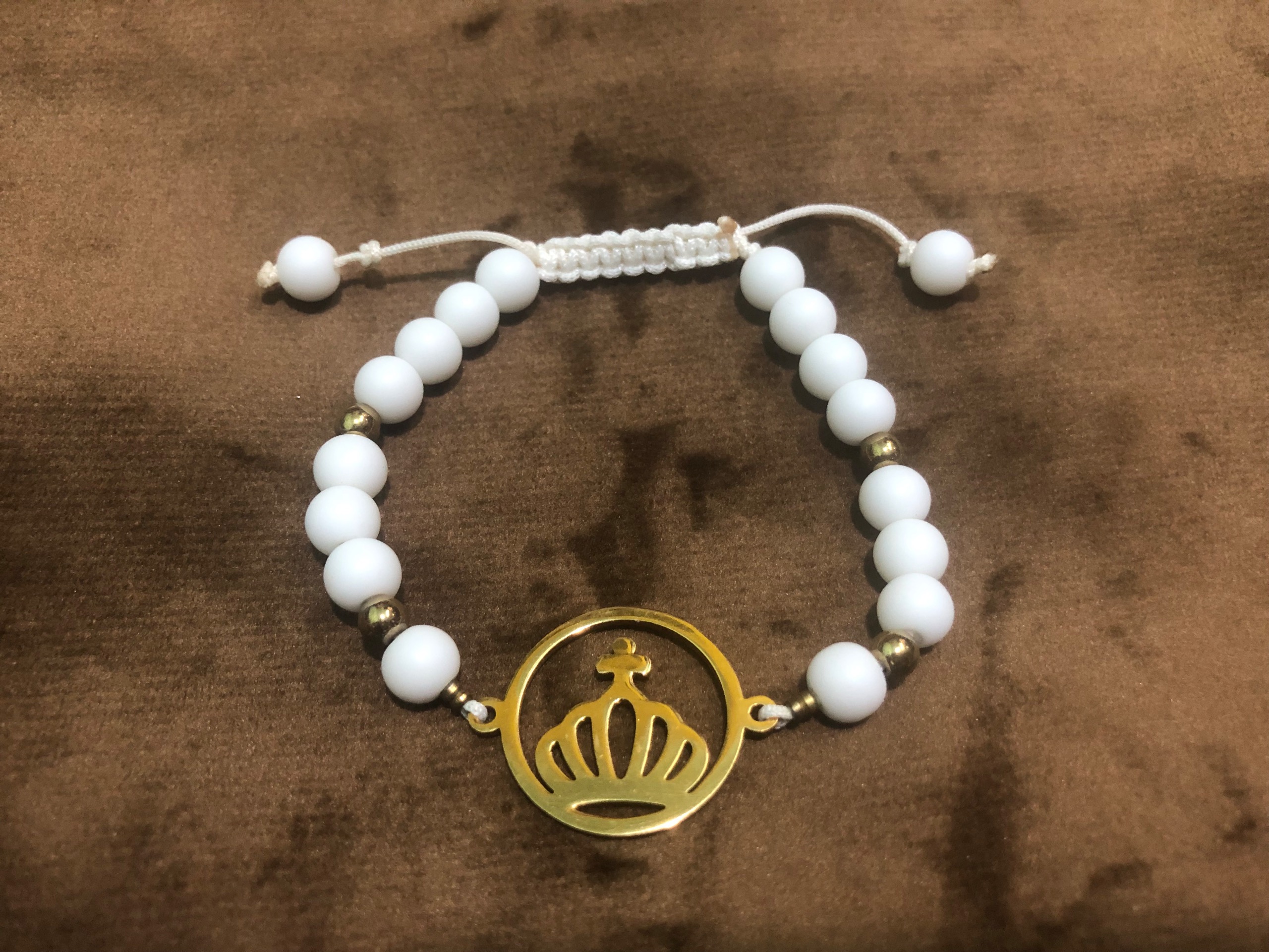 دستبند سنگ اونیکس سفید و حدیدطلایی و پلاک استیل