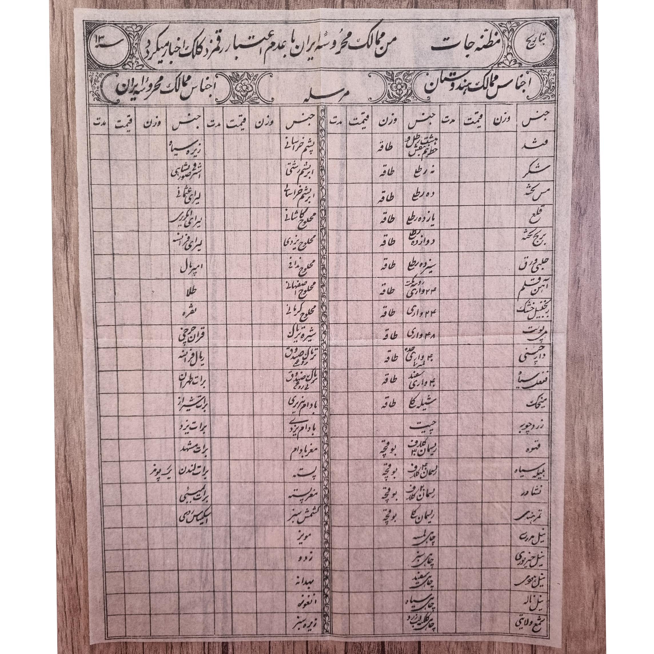 مظنه جات خام بندر بمبئی-هندوستان