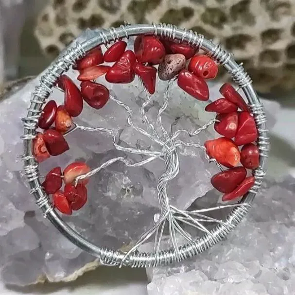 گردن آویز درخت زندگی مرجان سرخ طبیعی