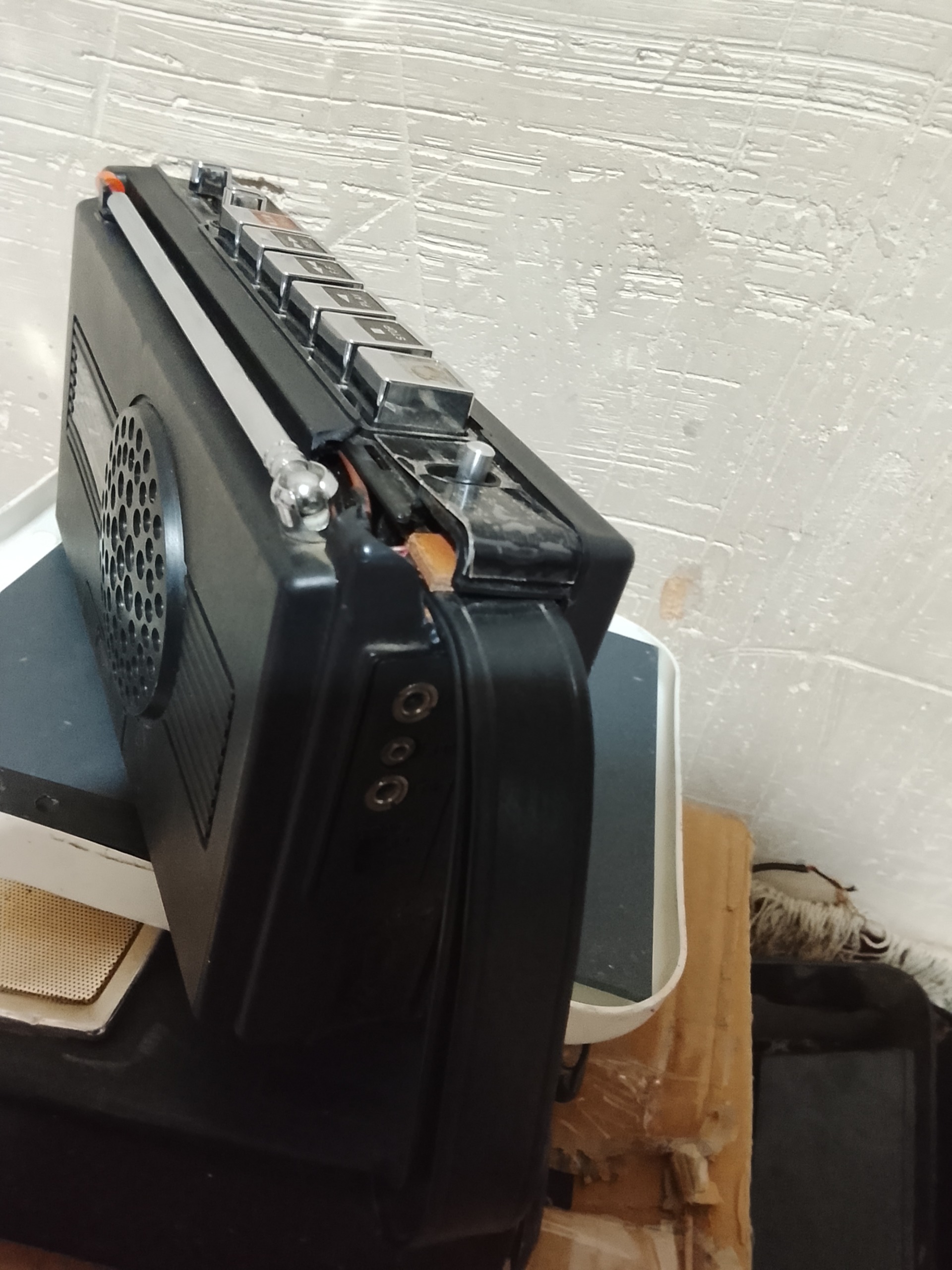 رادیو ضبط کوچک و تمیز وکلکسیونی بدنه از قسمت بالایی همان طور که در عکس ها مشخص است شکستگی کوچک دارد