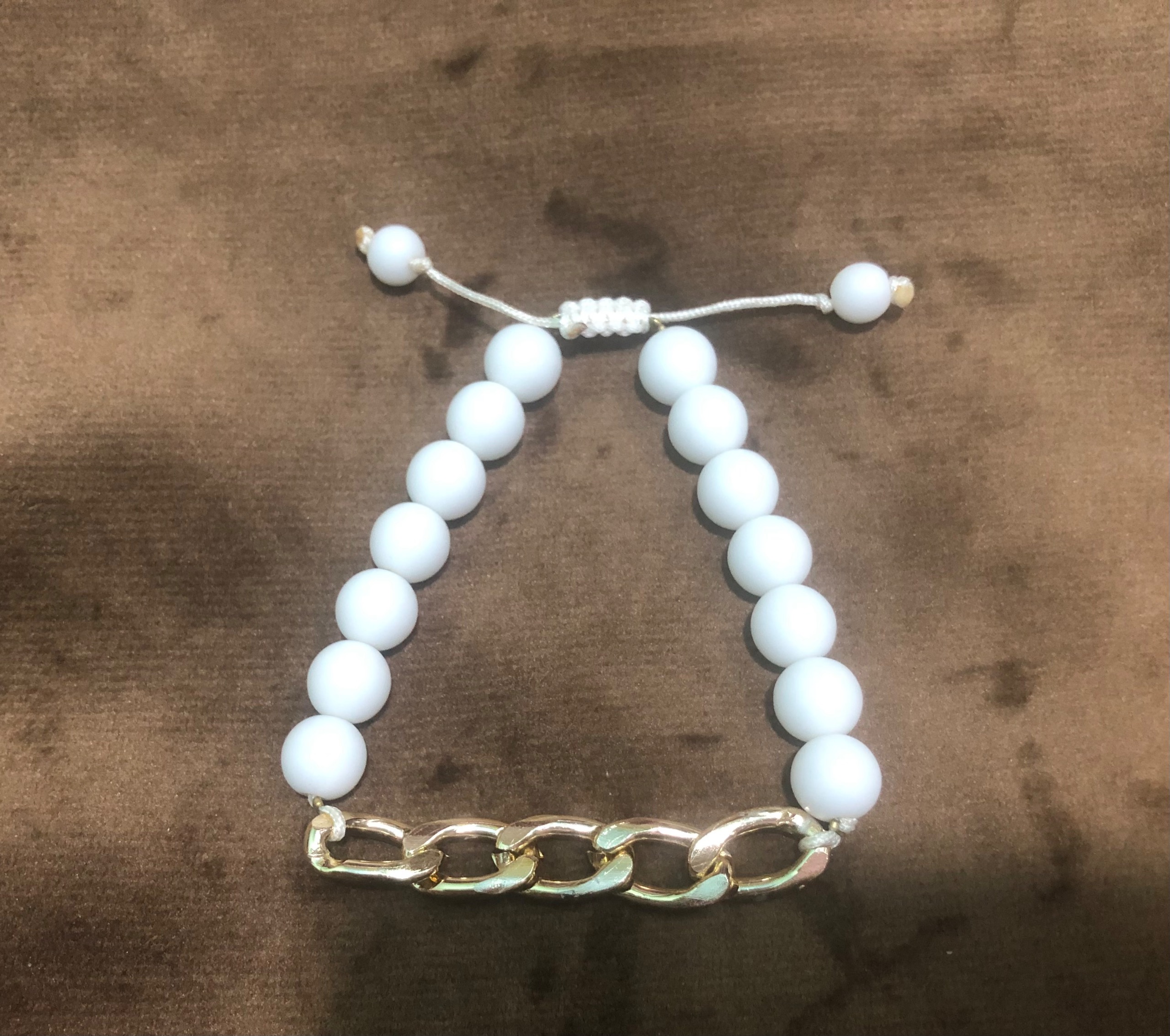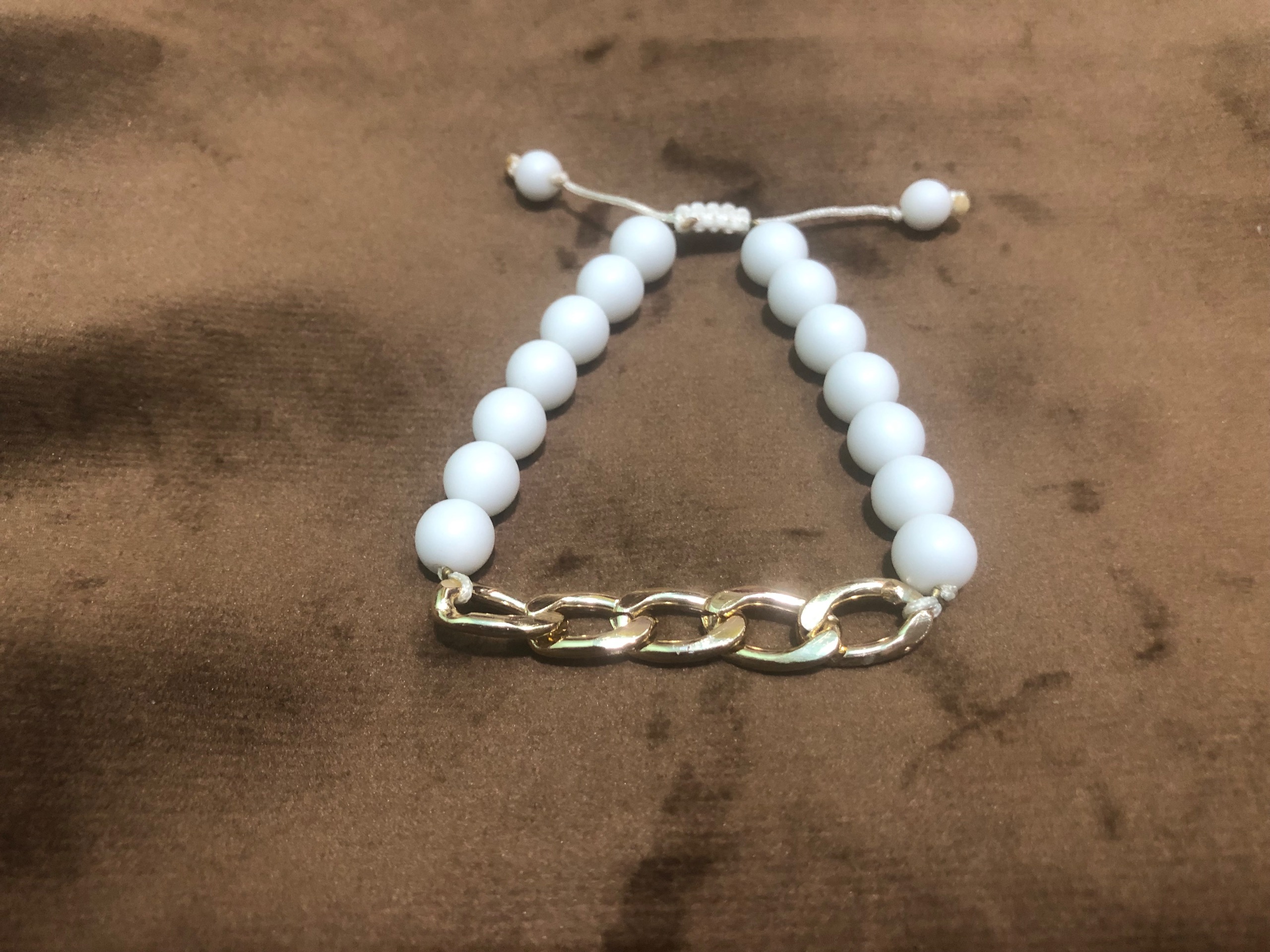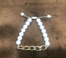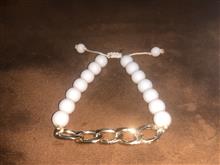 دستبند سنگ اونیکس سفید _ پلاک کارتیر طلایی