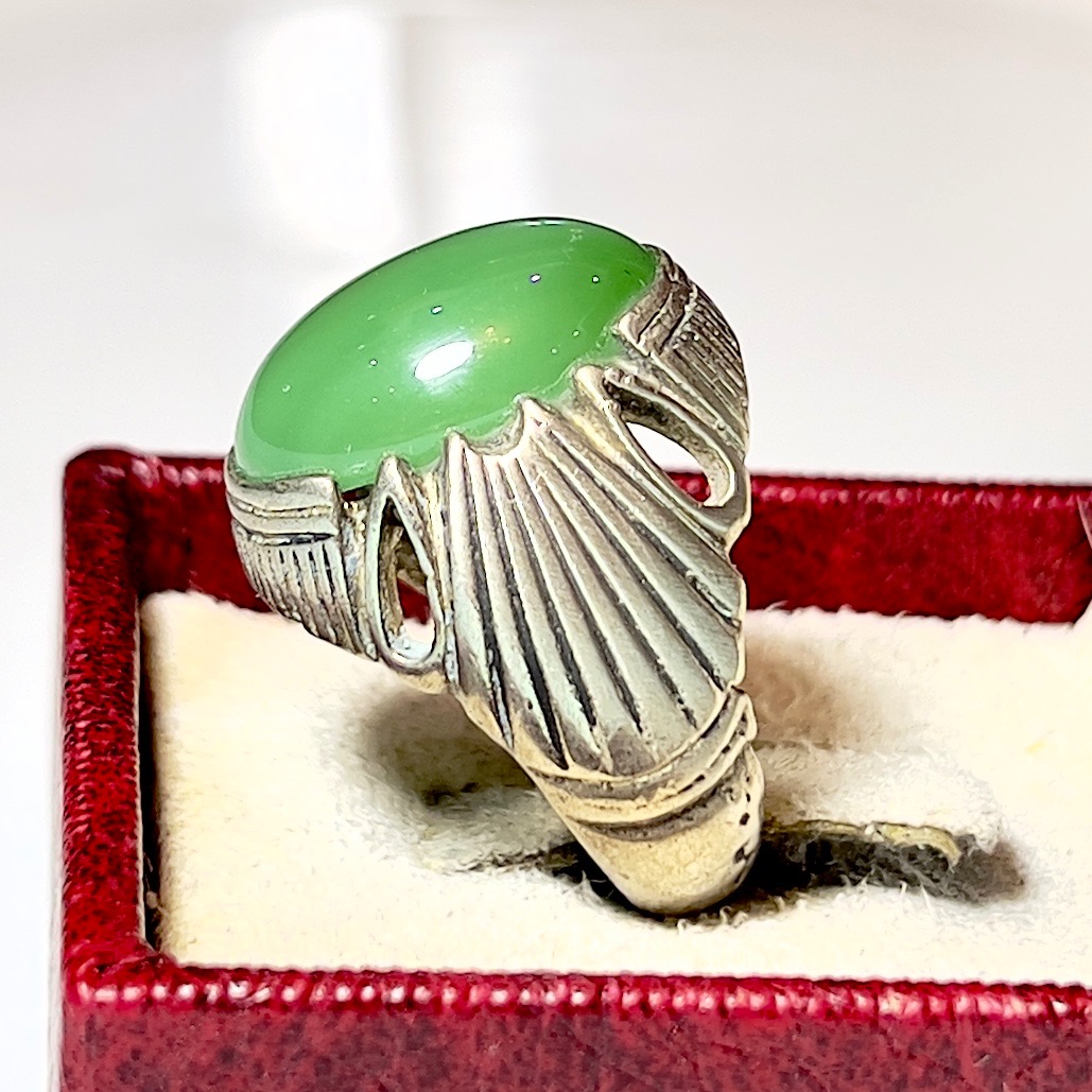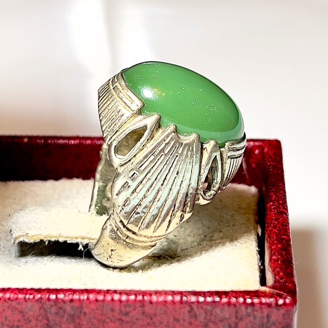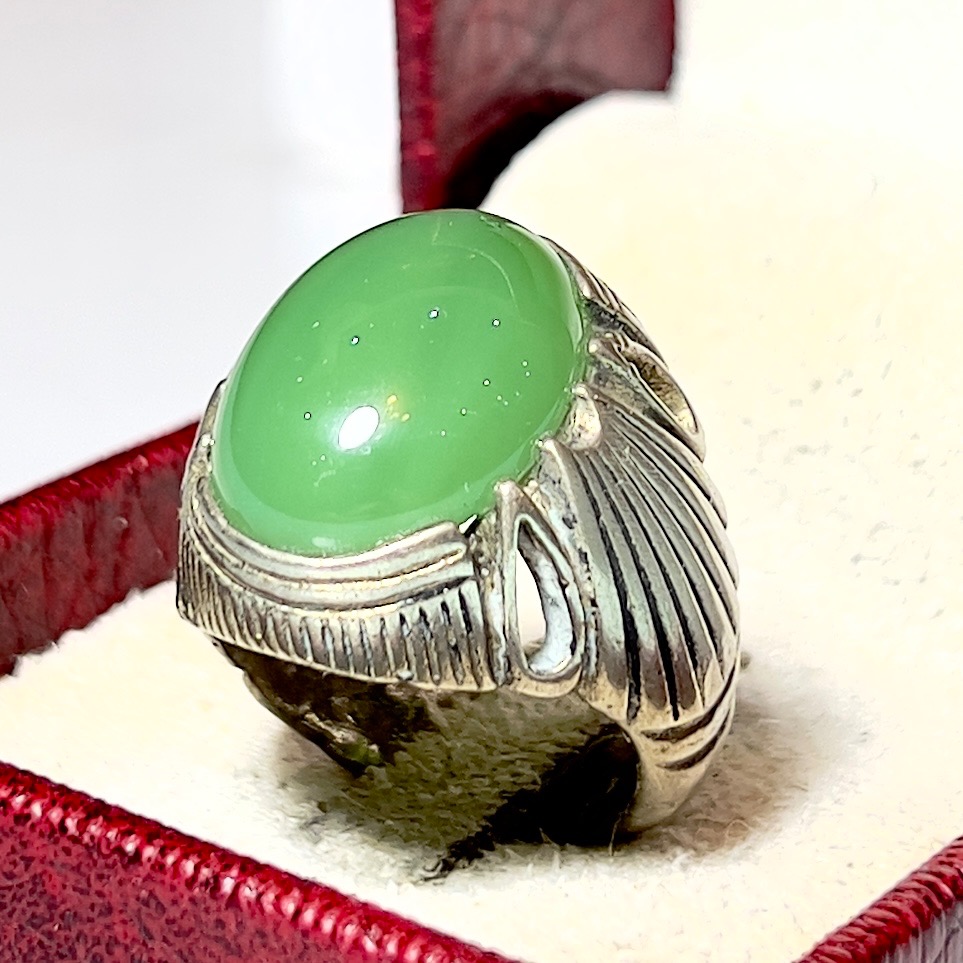 انگشترچشم گیر عقیق سبز طبیعی خاص معدنی