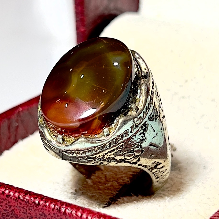 انگشتر عقیق سلیمانی آبدارطبیعی خیره کننده وبینظیر