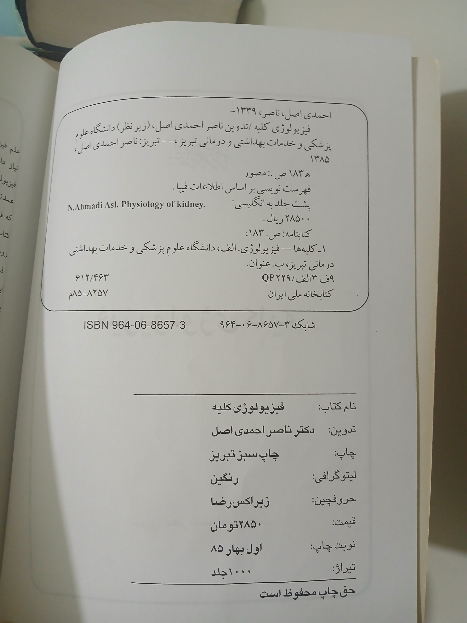 کتاب فیزیولوژی کلیه تالیف دکتر ناصر احمدی اصل