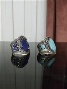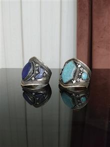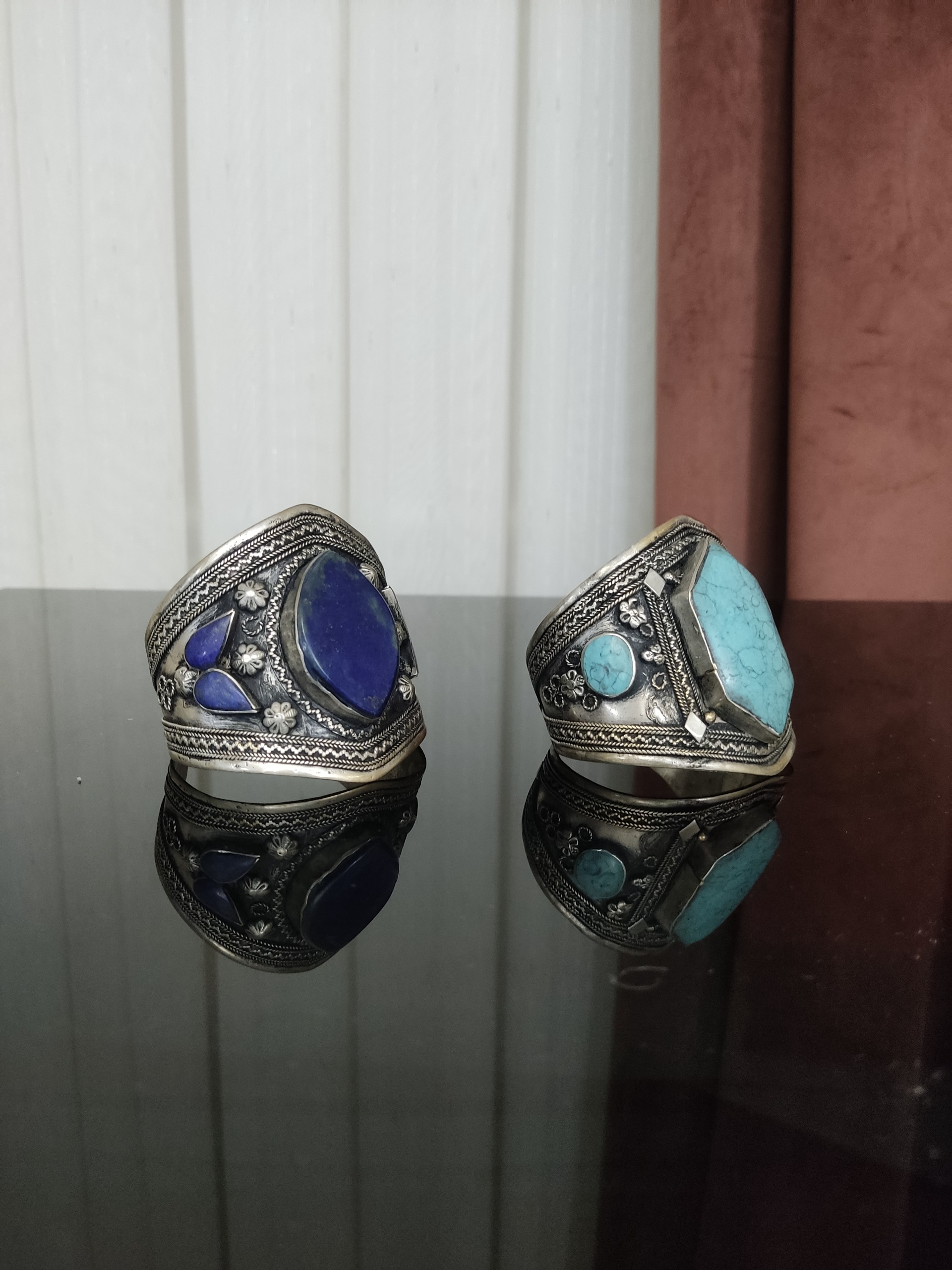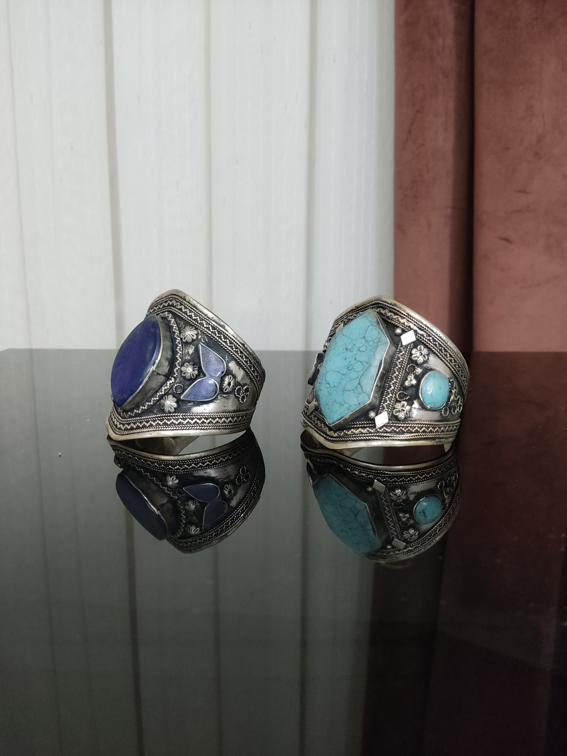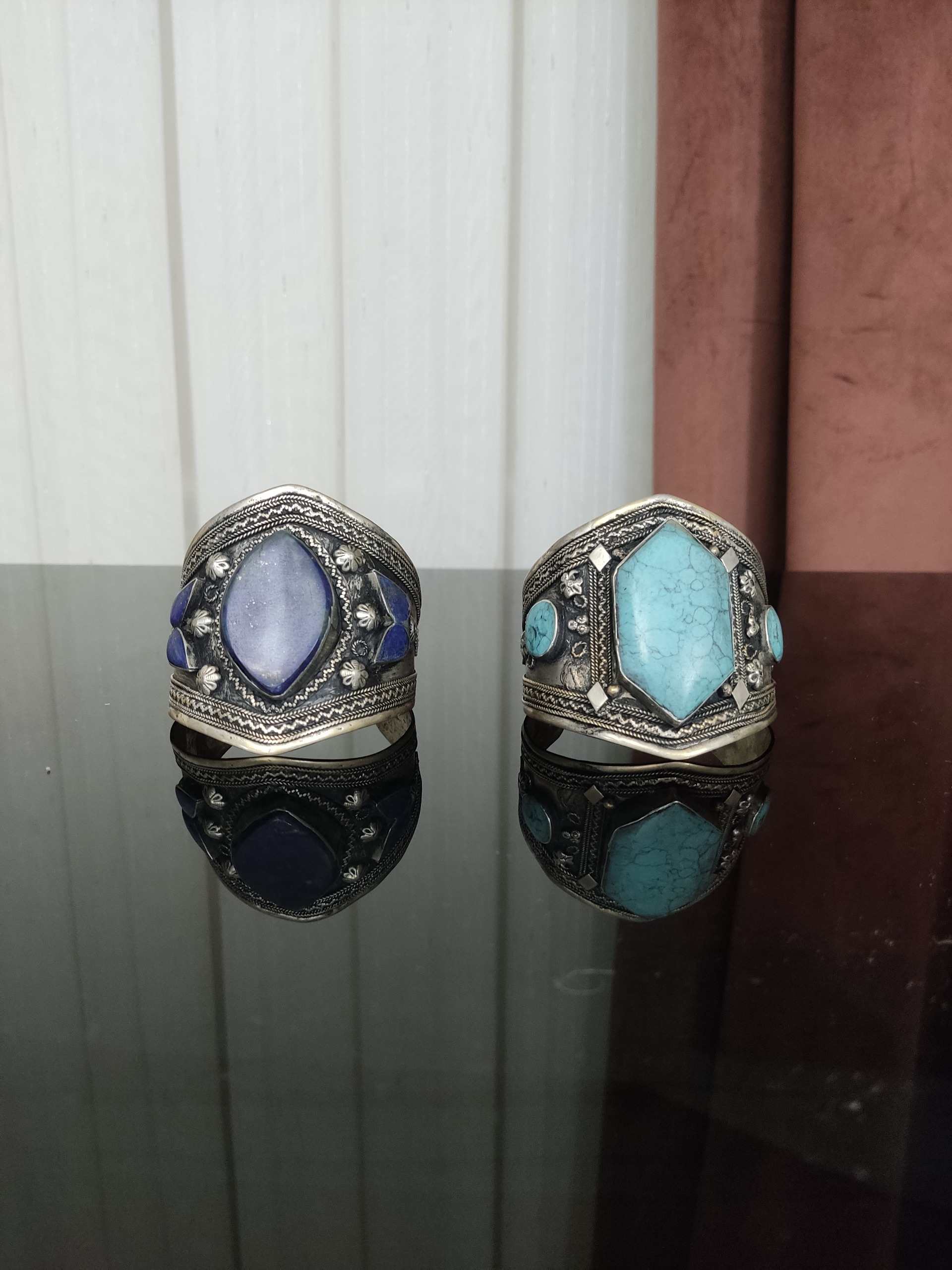 دو عدد دستبند ورشو قاجاری با سنگ فیروزه تبتی و لاجورد مطابق تصویر به قطر 6 سانتیمتر خواهشمندم از دیگر کالاهای اینجانب دیدن فرمایید.