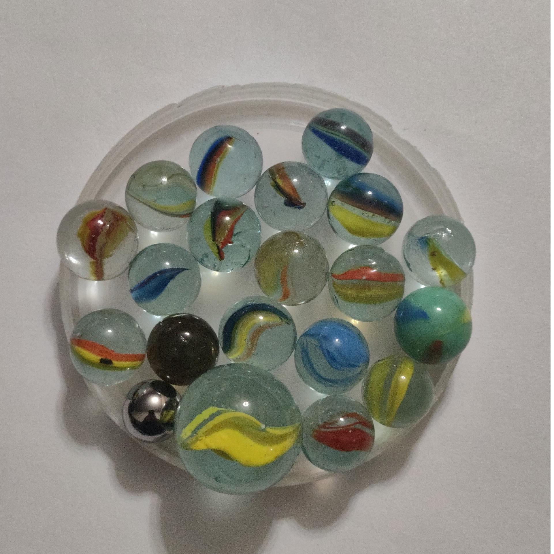 تیله با سایزهای مختلف و یک عدد فلزی شماره 3