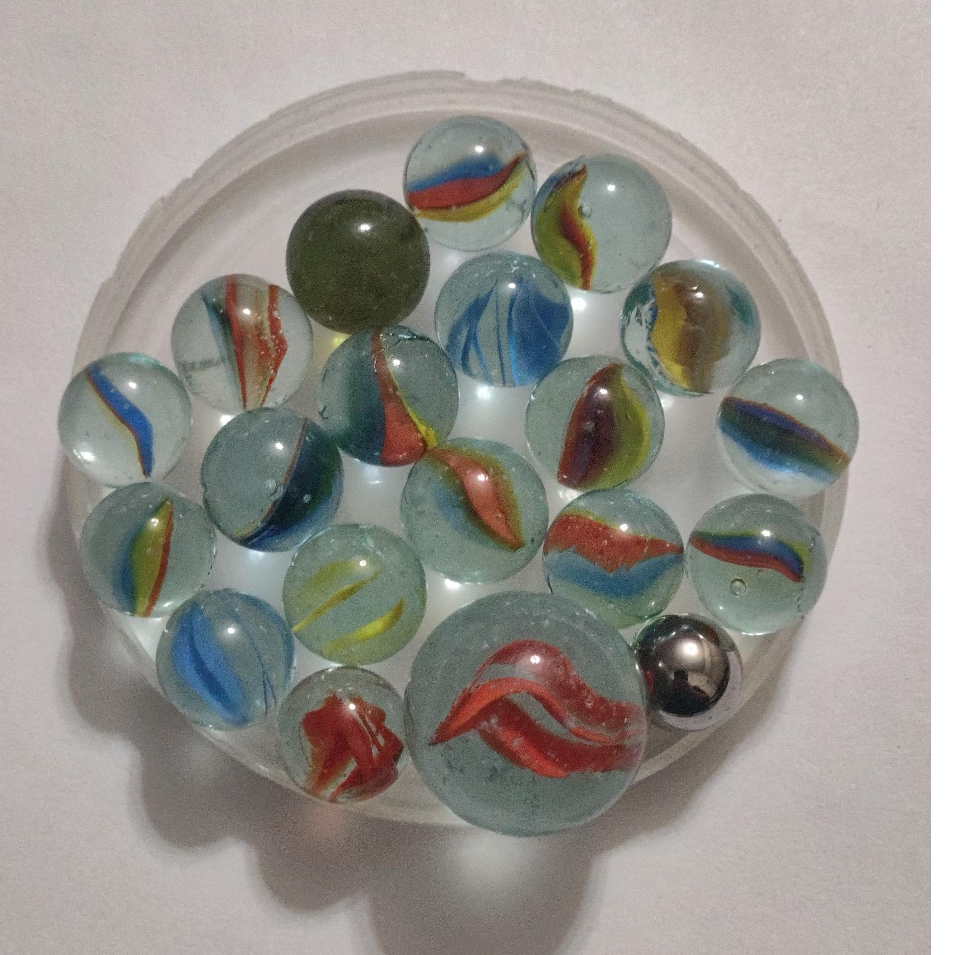 تیله با سایزهای مختلف و یک عدد فلزی شماره 5