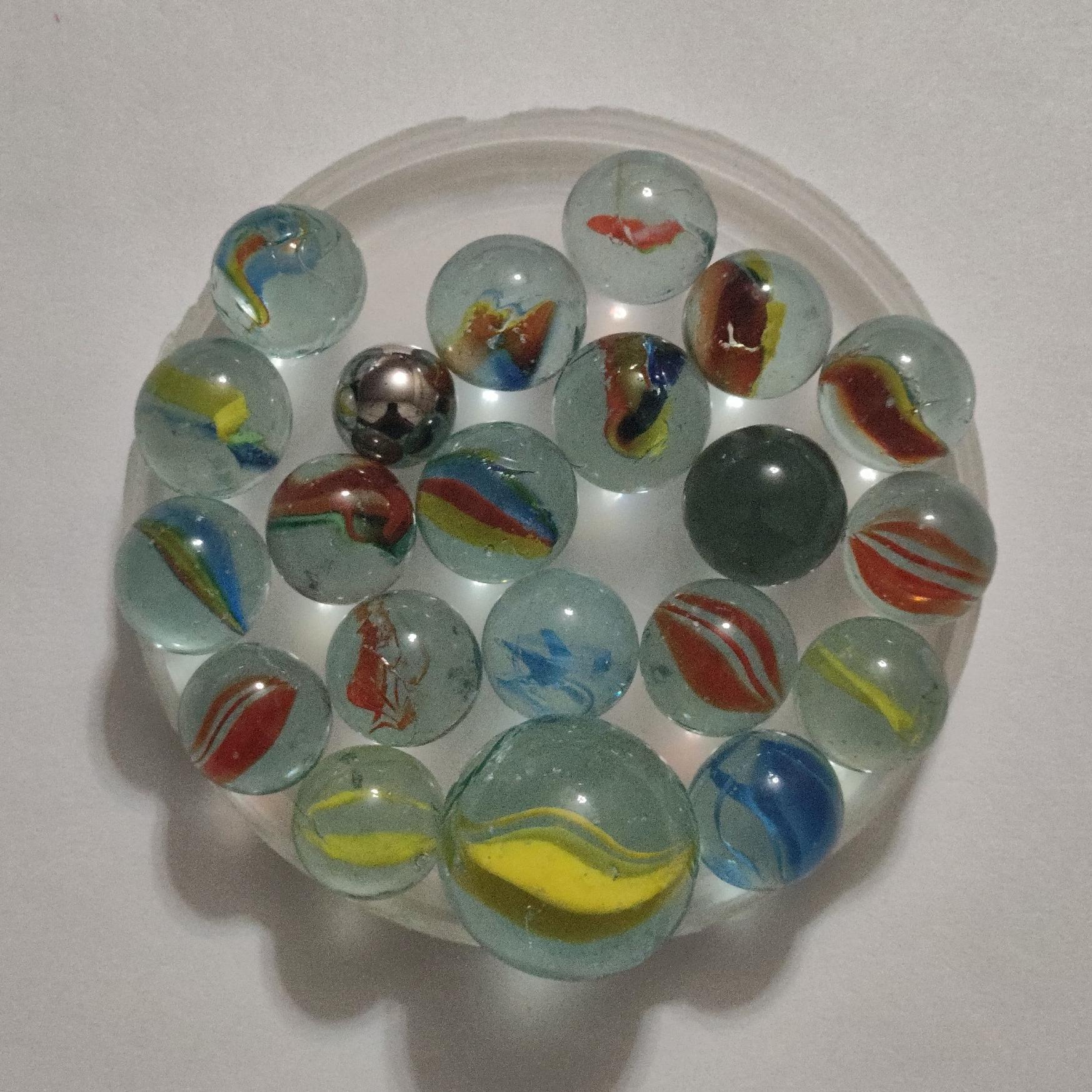 تیله با سایزهای مختلف و یک عدد فلزی شماره 11