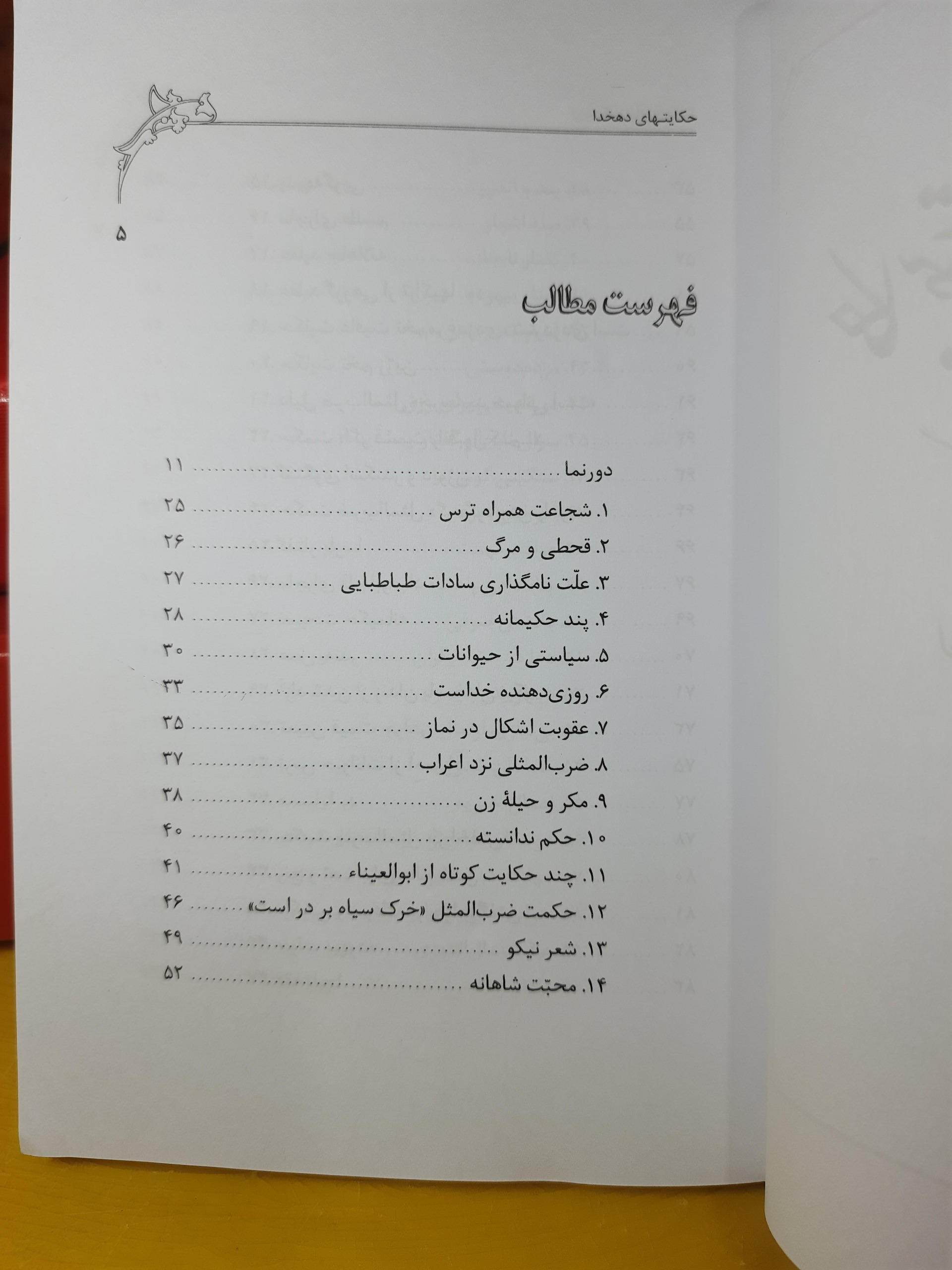 کد 1420 حکایتهای دهخدا گزیده حکایتهای تربیتی از لغتنامه دهخدا تدوین از محمد حسین صفاخو در 302 صفحه چاپ سال 84 جلد مطابق تصاویر دارای زدگی و رنگ پریدگیهای جزئی صفحات کاملاً سالم