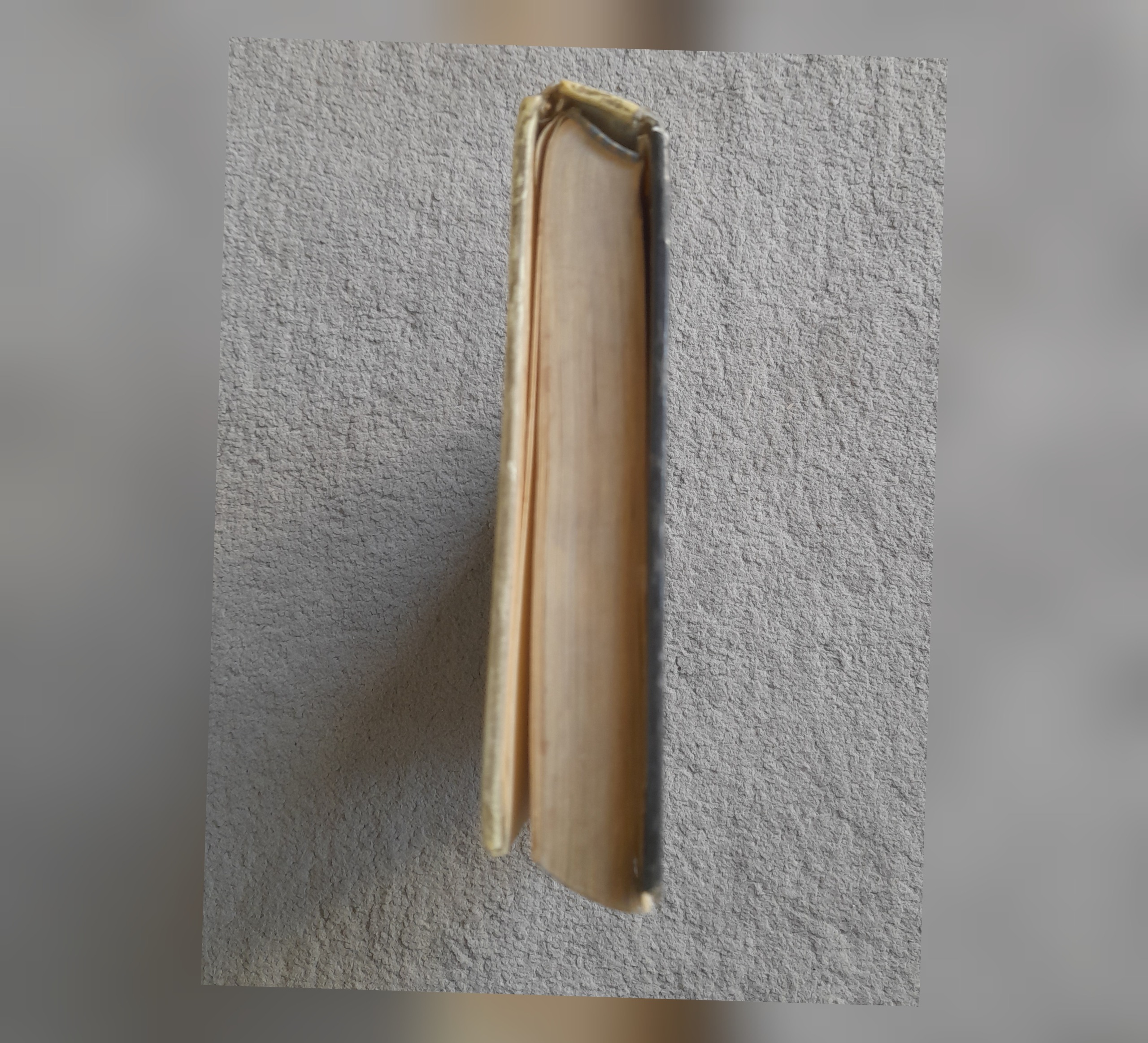 شیرازه کتاب مقدار کجی دارد که در عکس مشخص است و صفحه آخر مقداری پارگی دارد.