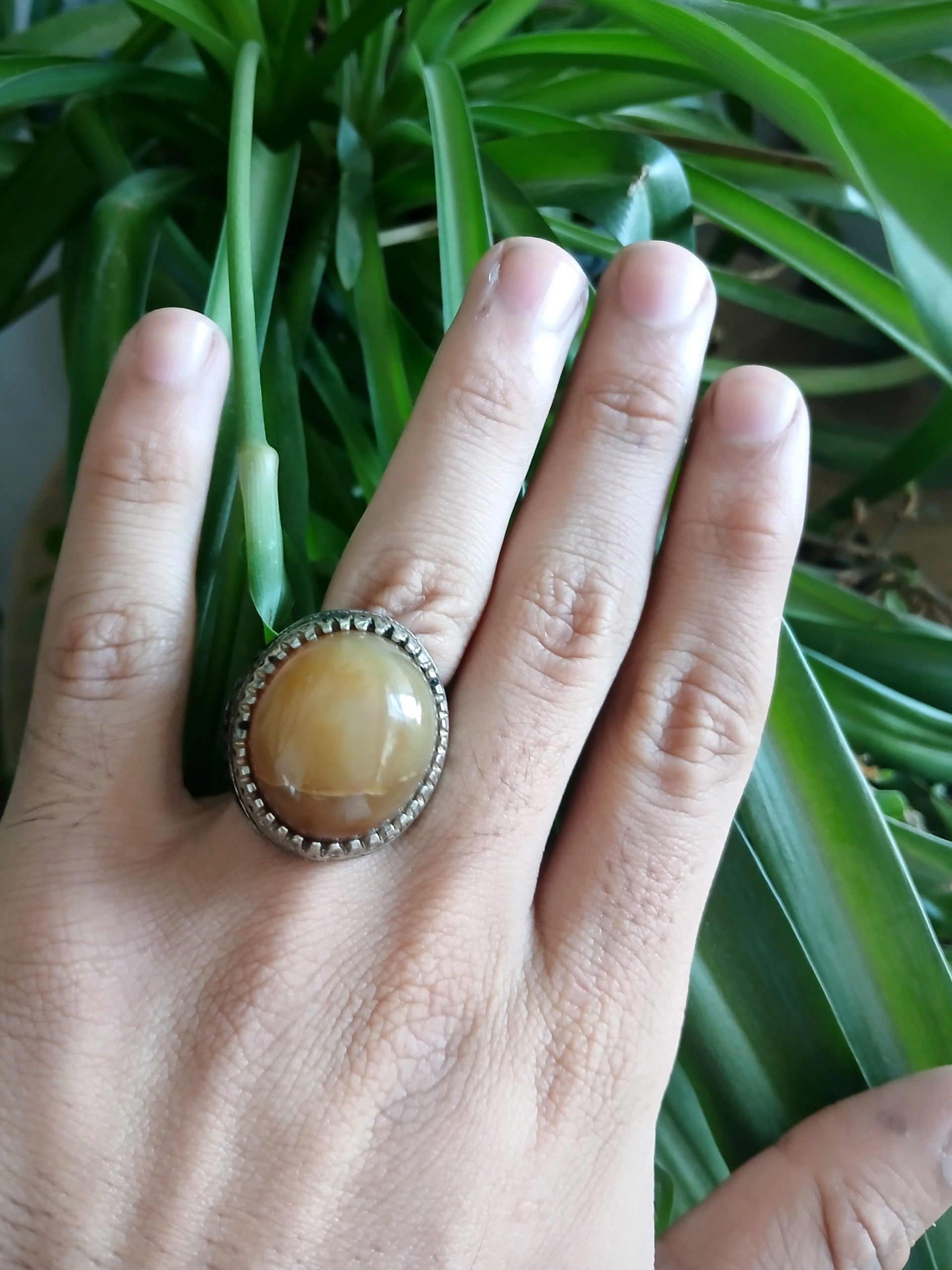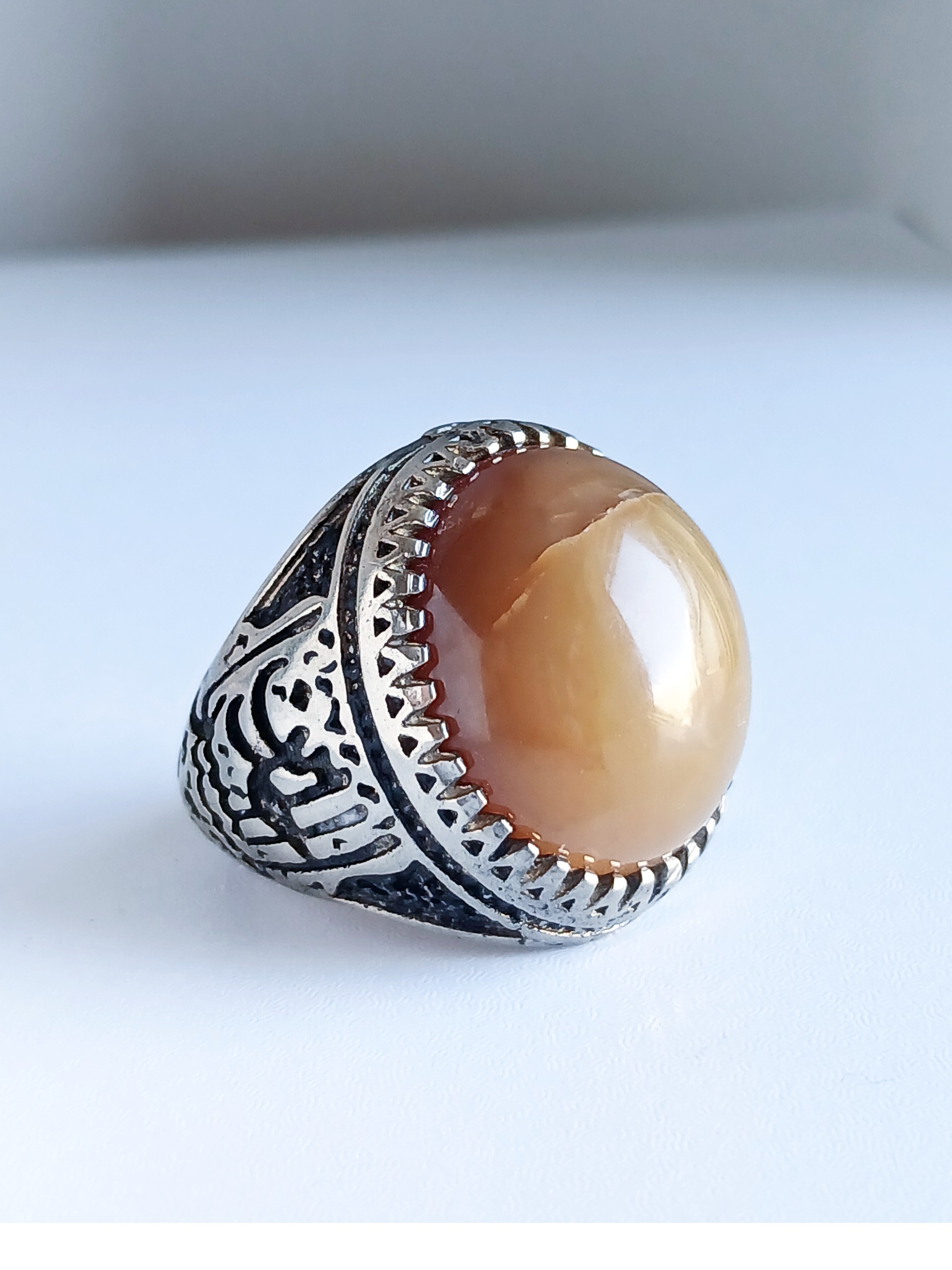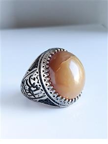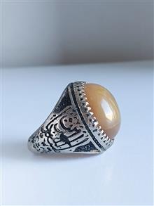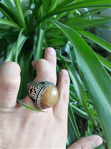 انگشتر عقیق زرد حنایی درشت سید الساجدین