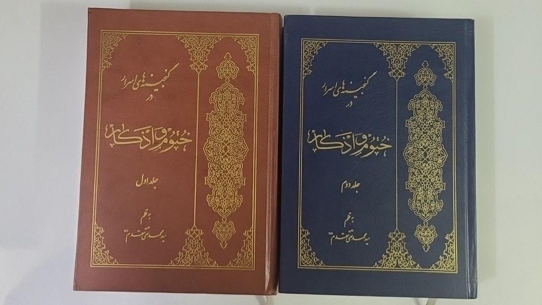 گنجینه های اسرار در ختوم و اذکار 2 جلدی به قلم محمد تقی مقدم چاپ بیست و سوم انتشارات مقدم قطع وزیری جلد گالینگور نفیس 1723 صفحه تمیز و سالم در حد نو