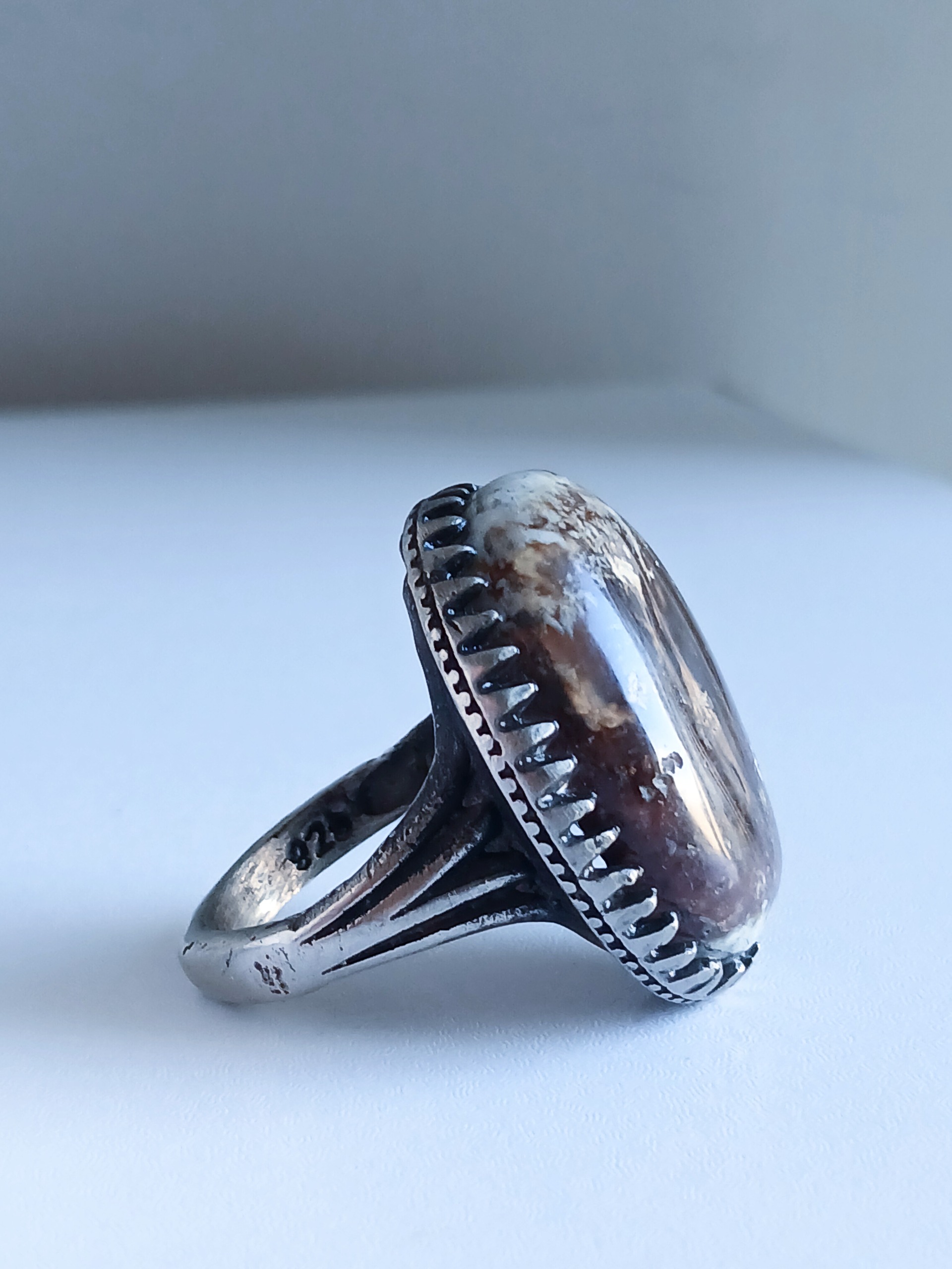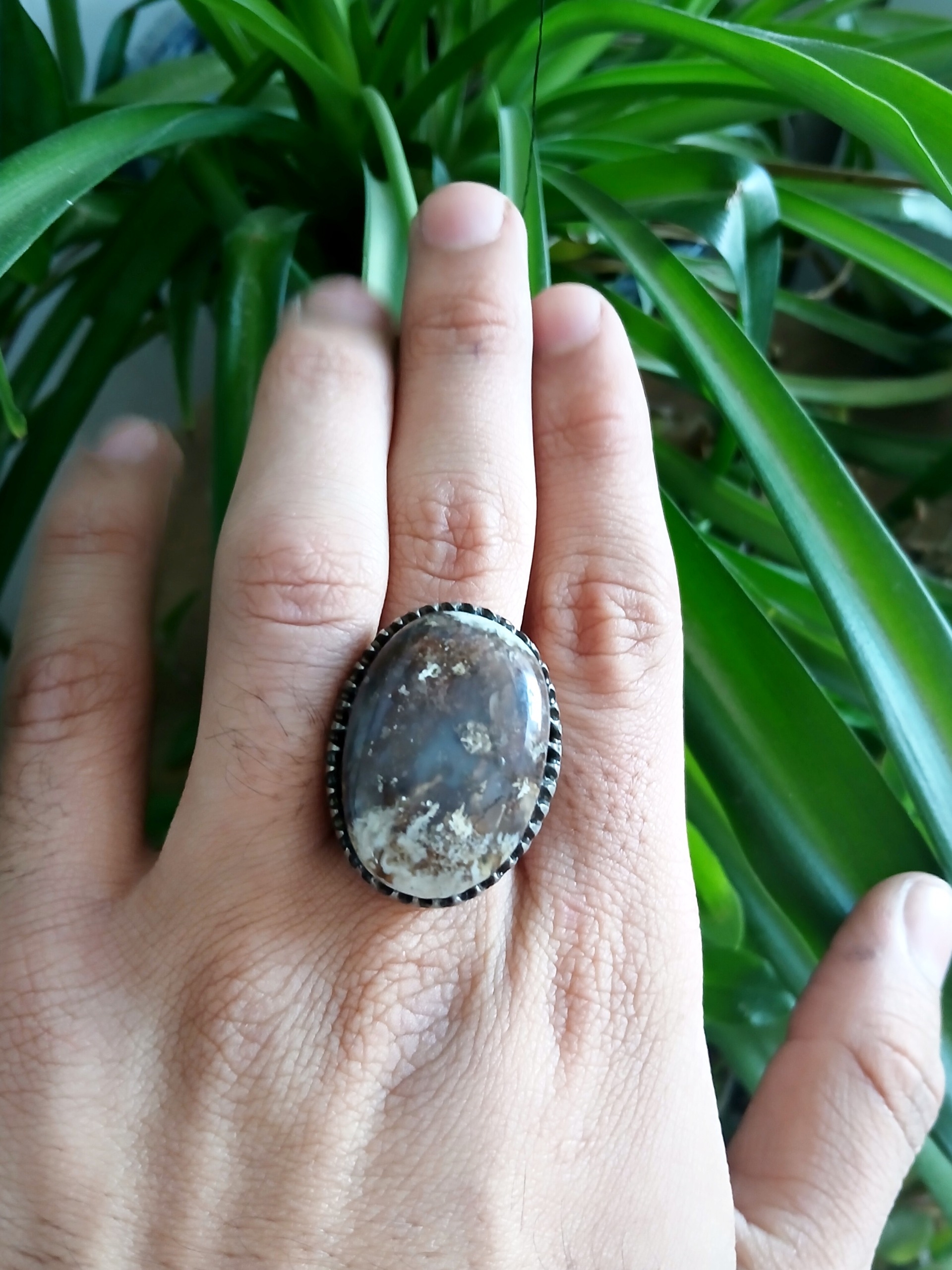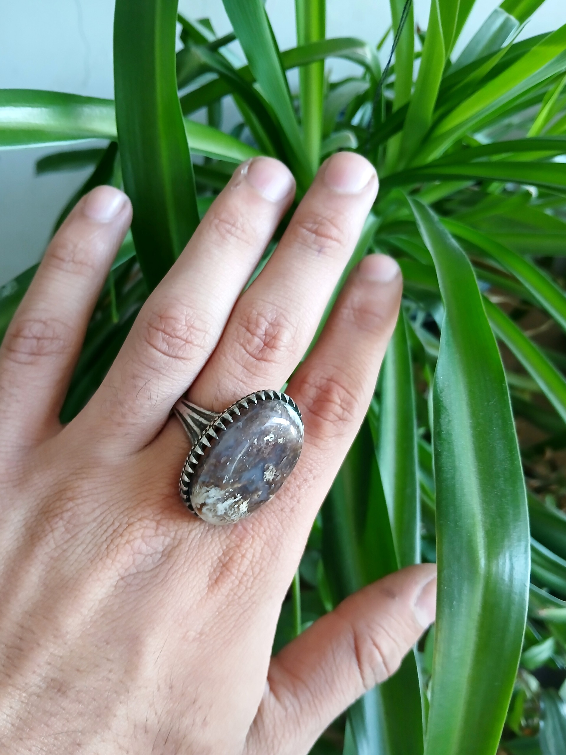 انگشتر عقیق شجر بهاره درشت و غول حک 925
