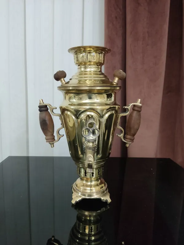 سماور ذغالی برنجی یک لیتری مهردار