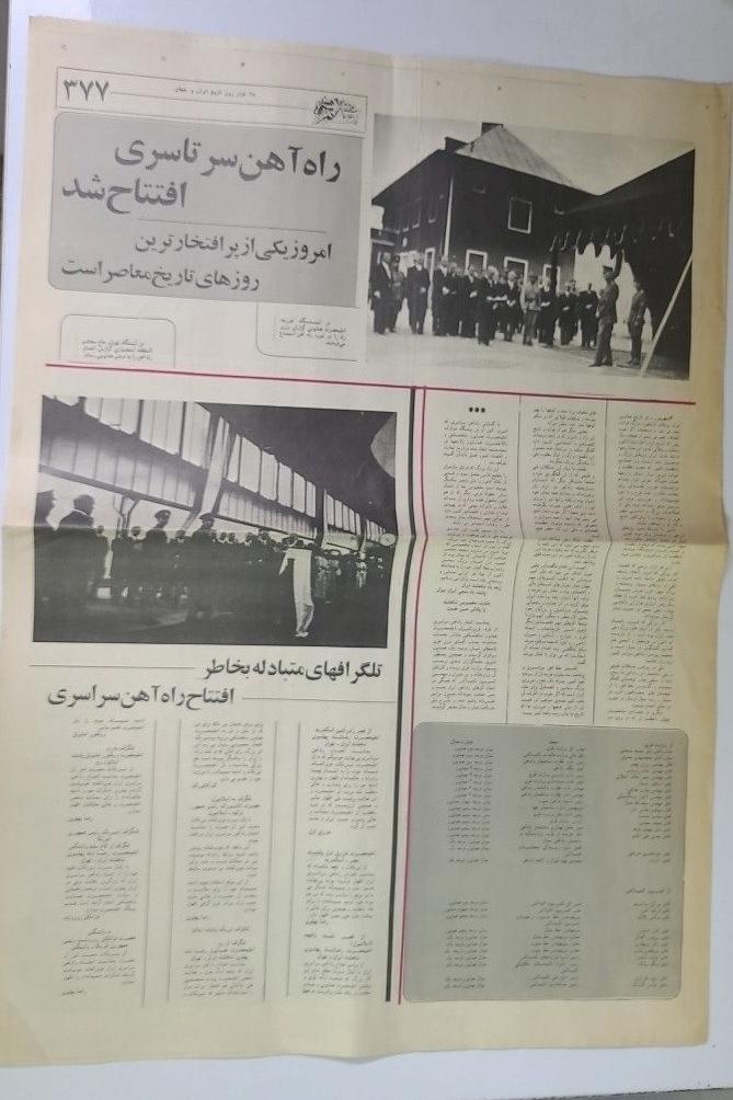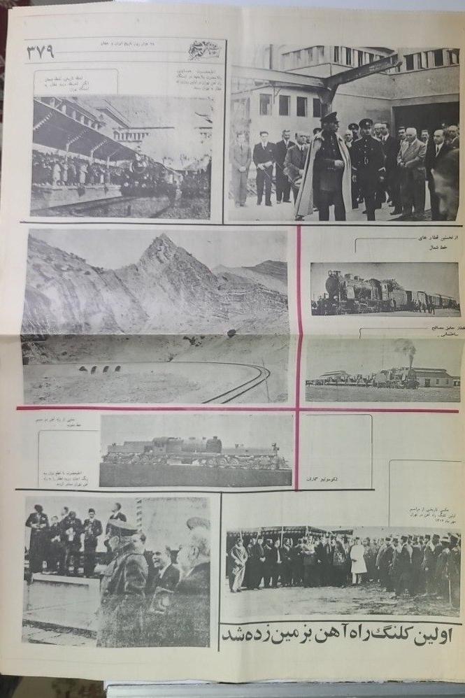 روزنامه 28 هزار روز تاریخ ایران و جهان ویژه افتتاح را آهن سراسری ایران شمار صفحات 8 برگ از صفحه 377 تا صفحه 384 به همراه عکس های سیاه و سفید قدیمی مربوط به دوران رضاشاه پهلوی