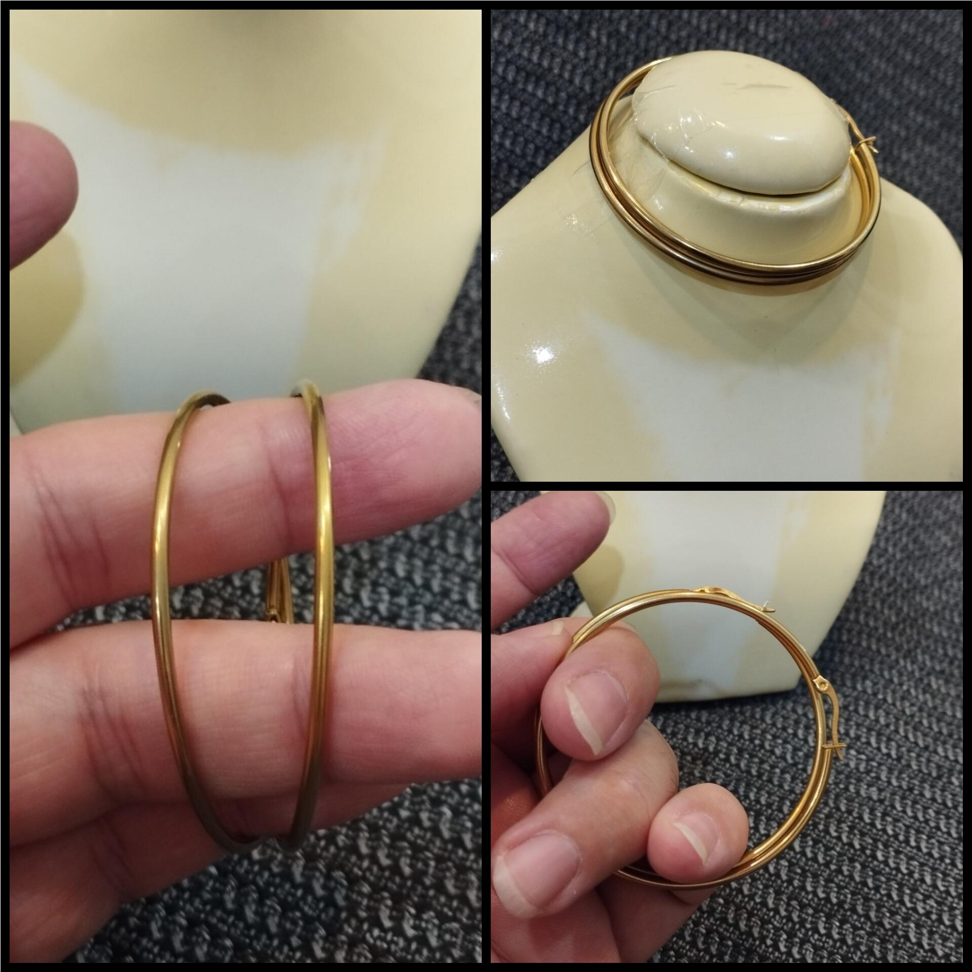 گوشواره حلقه ای استیل طلایی قدیمی سایز بزرگ