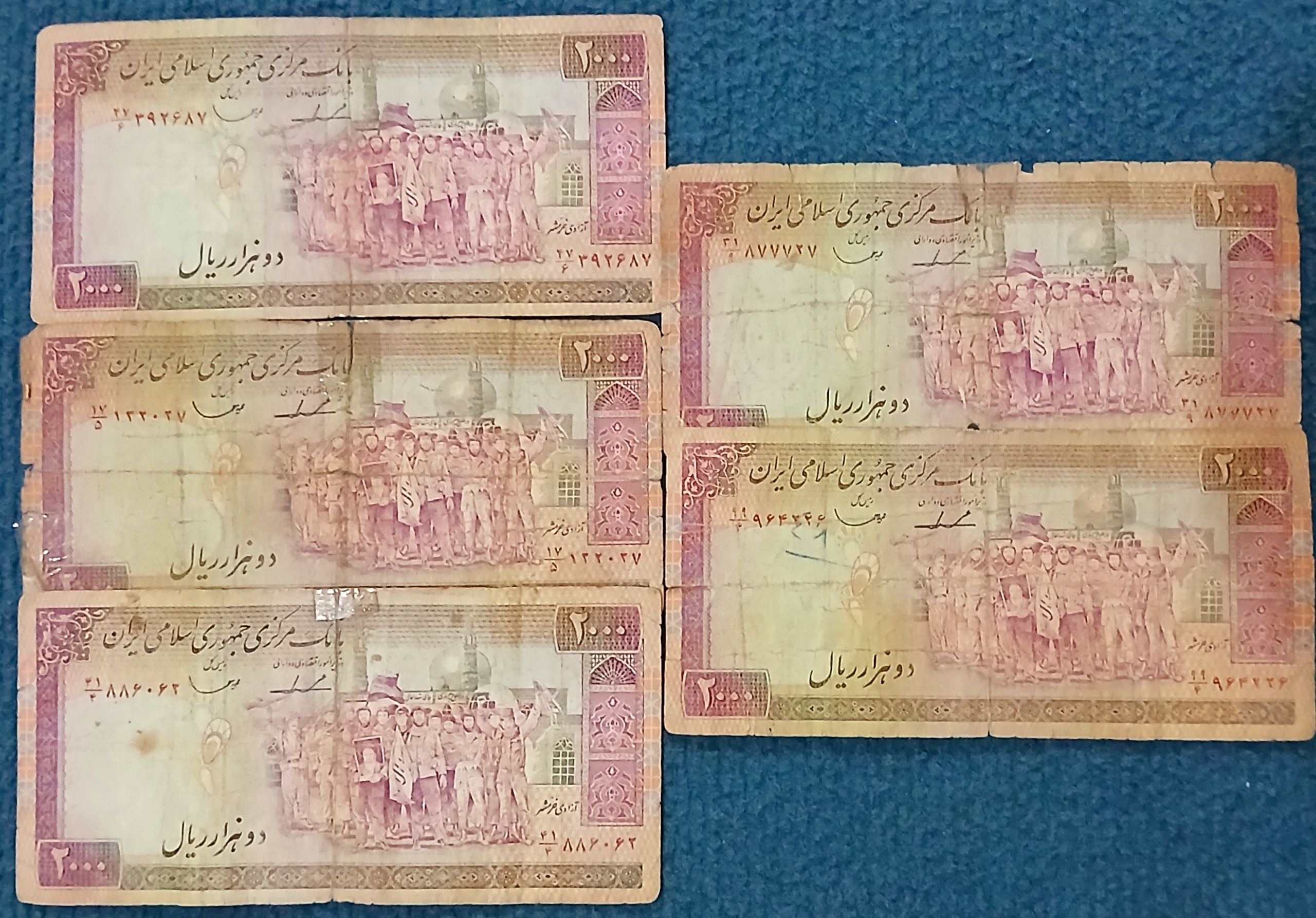 5عدد اسکناس 200تومانی تظاهراتی فیلیگران الله4 عدد ف فهمیده 1عدد. 3عدد شماره ریز 2عددشماره درشت. امضاها یکسان و امضا کمیاب.