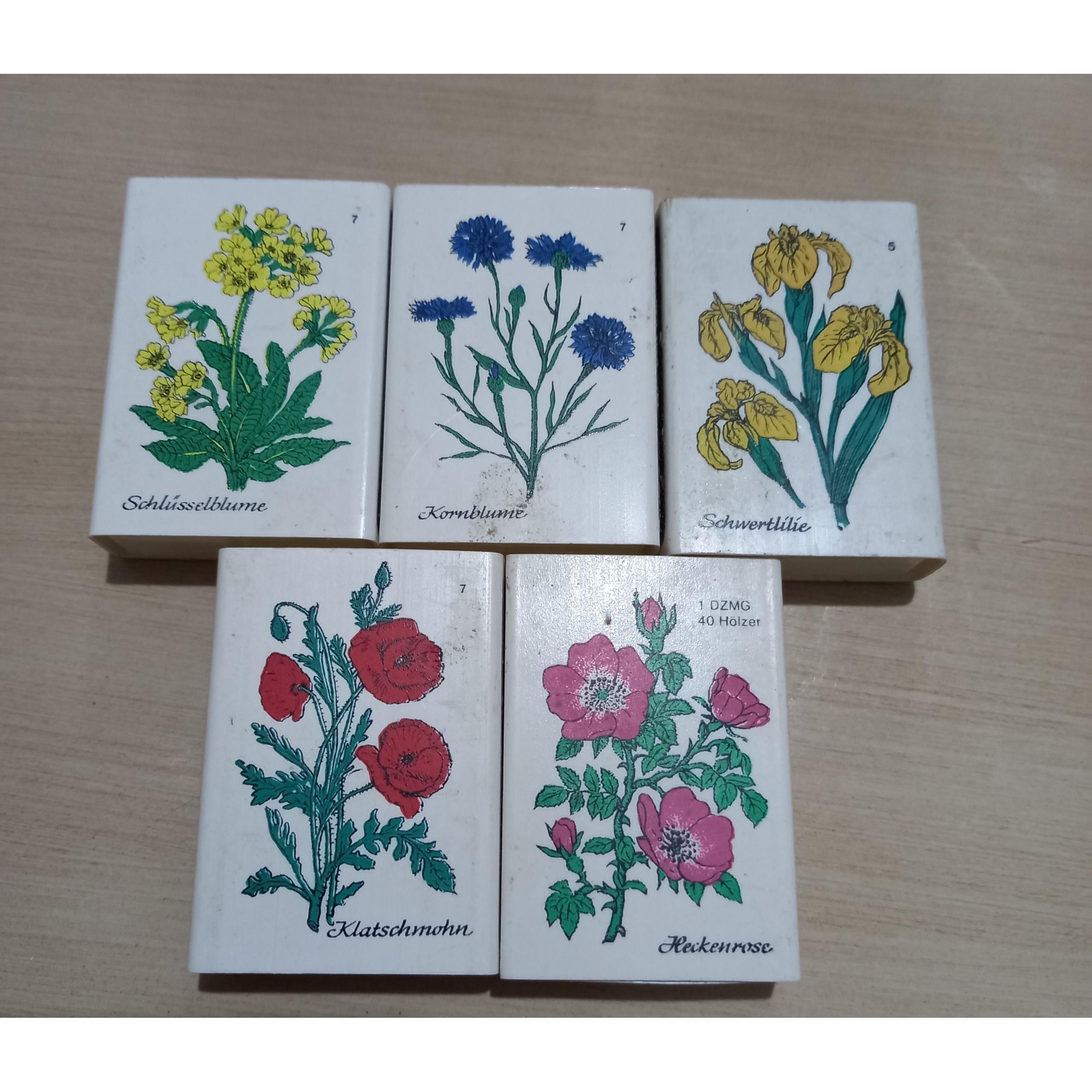 سری 5 عددی کبریت پلاستیکی آلمانی با تصویر گلها