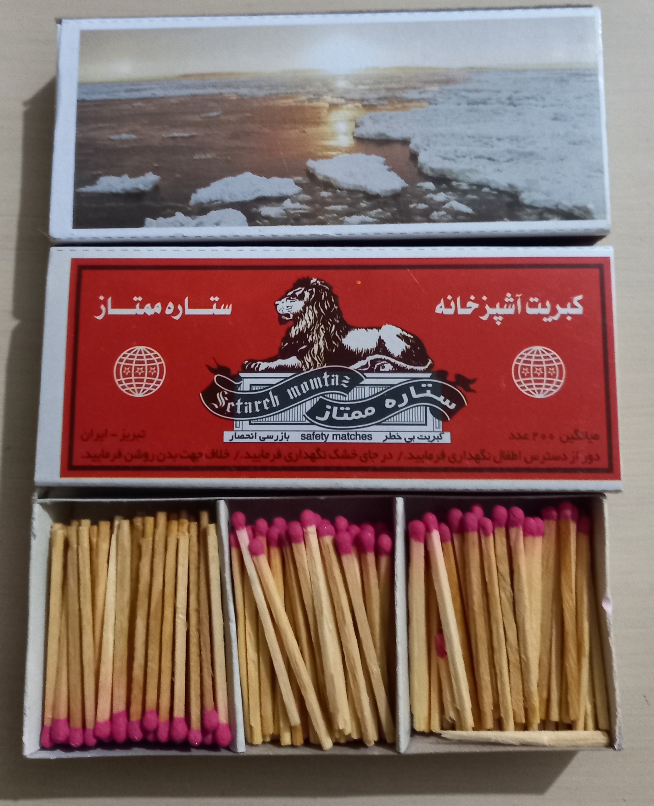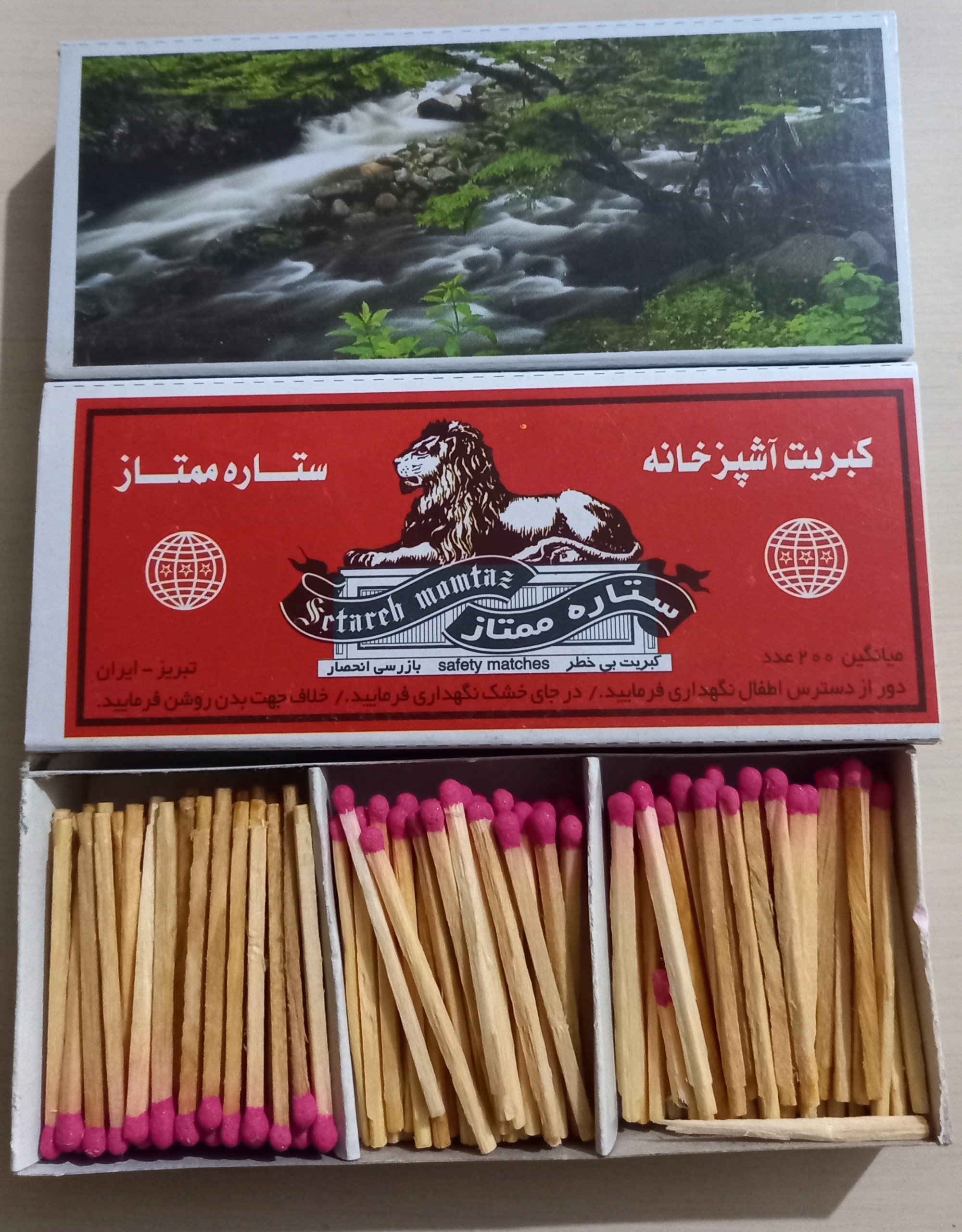 سری کبریتهای سایز آشپزخانه ستاره ممتاز با تصاویر مختلف طبیعت در پشت از تولیدات دهه 80 شرکت ستاره ممتاز میباشد. هر کبریت دارای کشویی 3 بخشی بوده و محتوی 200 خلال میباشد.