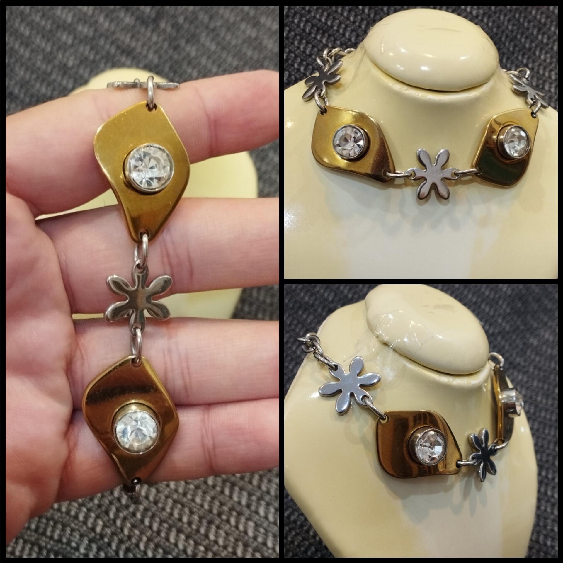 دستبند استیل طرح گل طلایی نقره ای جواهر نشان