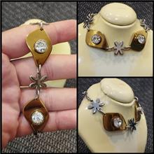 دستیند طرح گل طلایی نقره ای خاص جواهر نشان