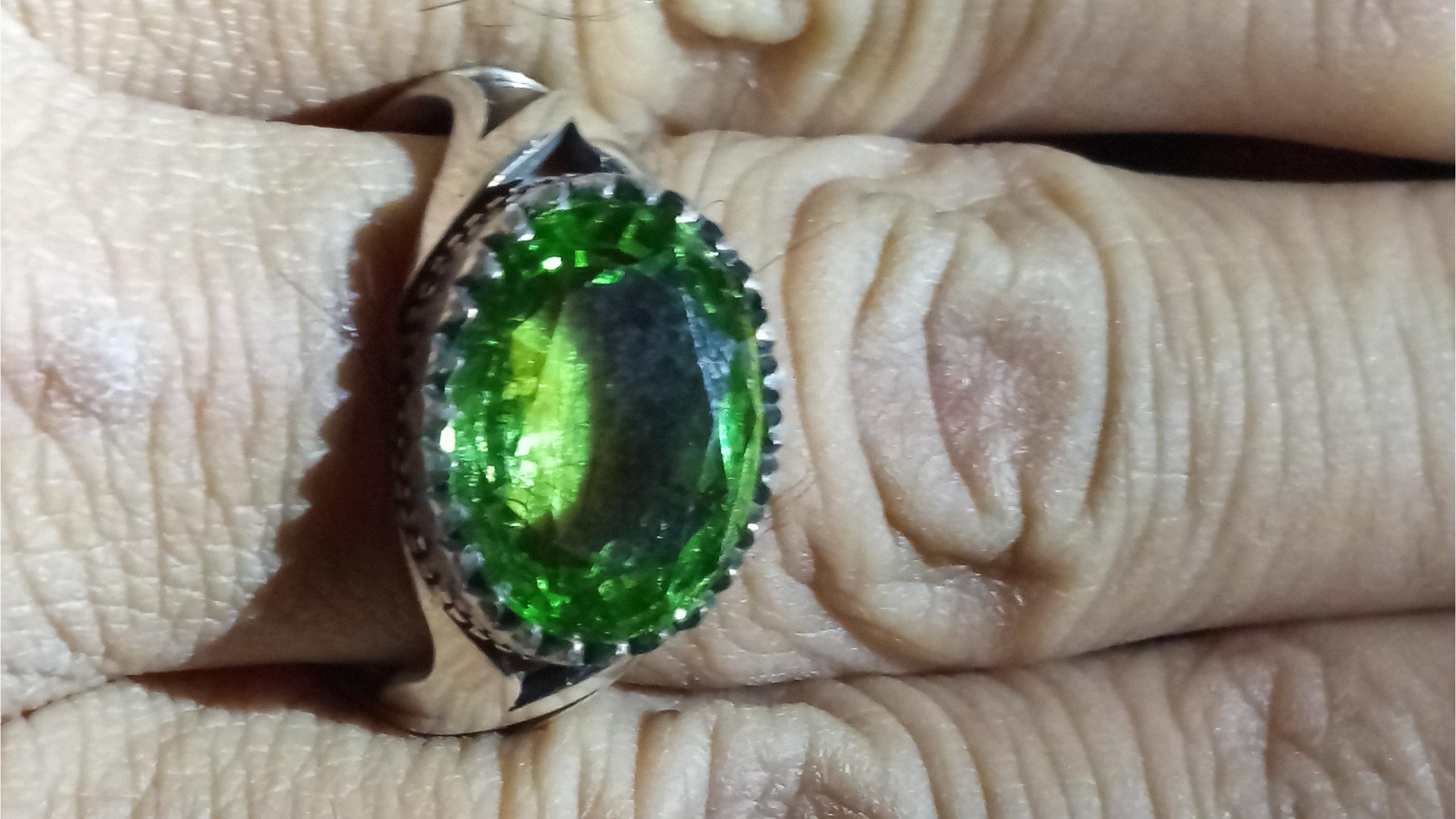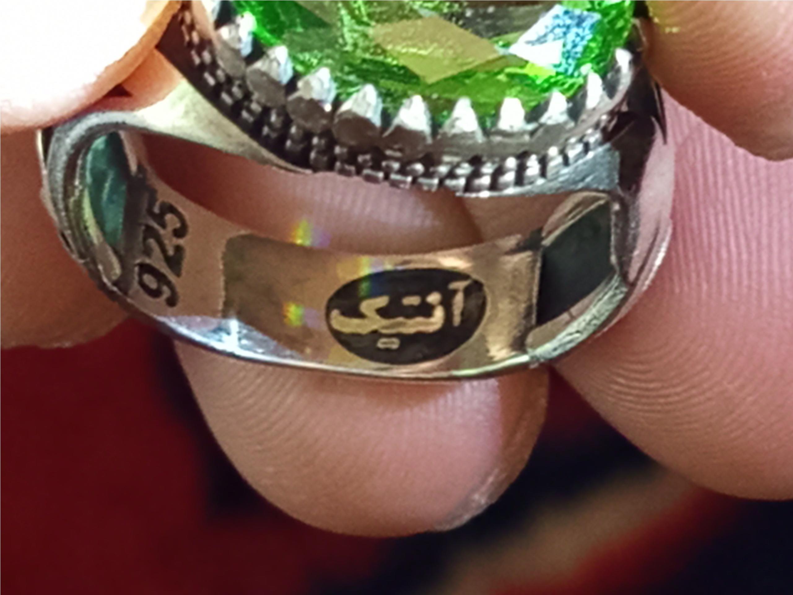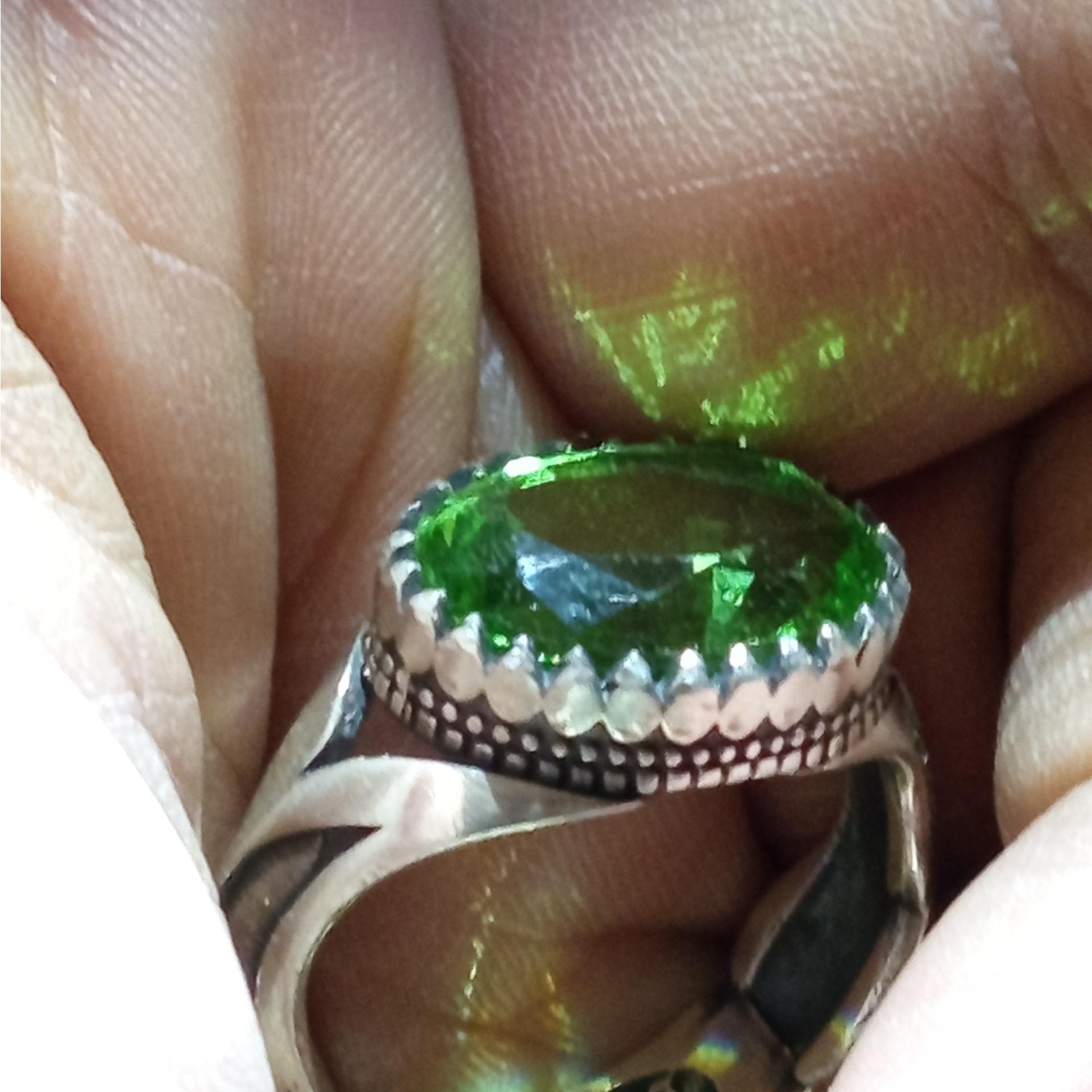 یک قطعه انگشتر نقره با نگین سبزرنگ زیبا