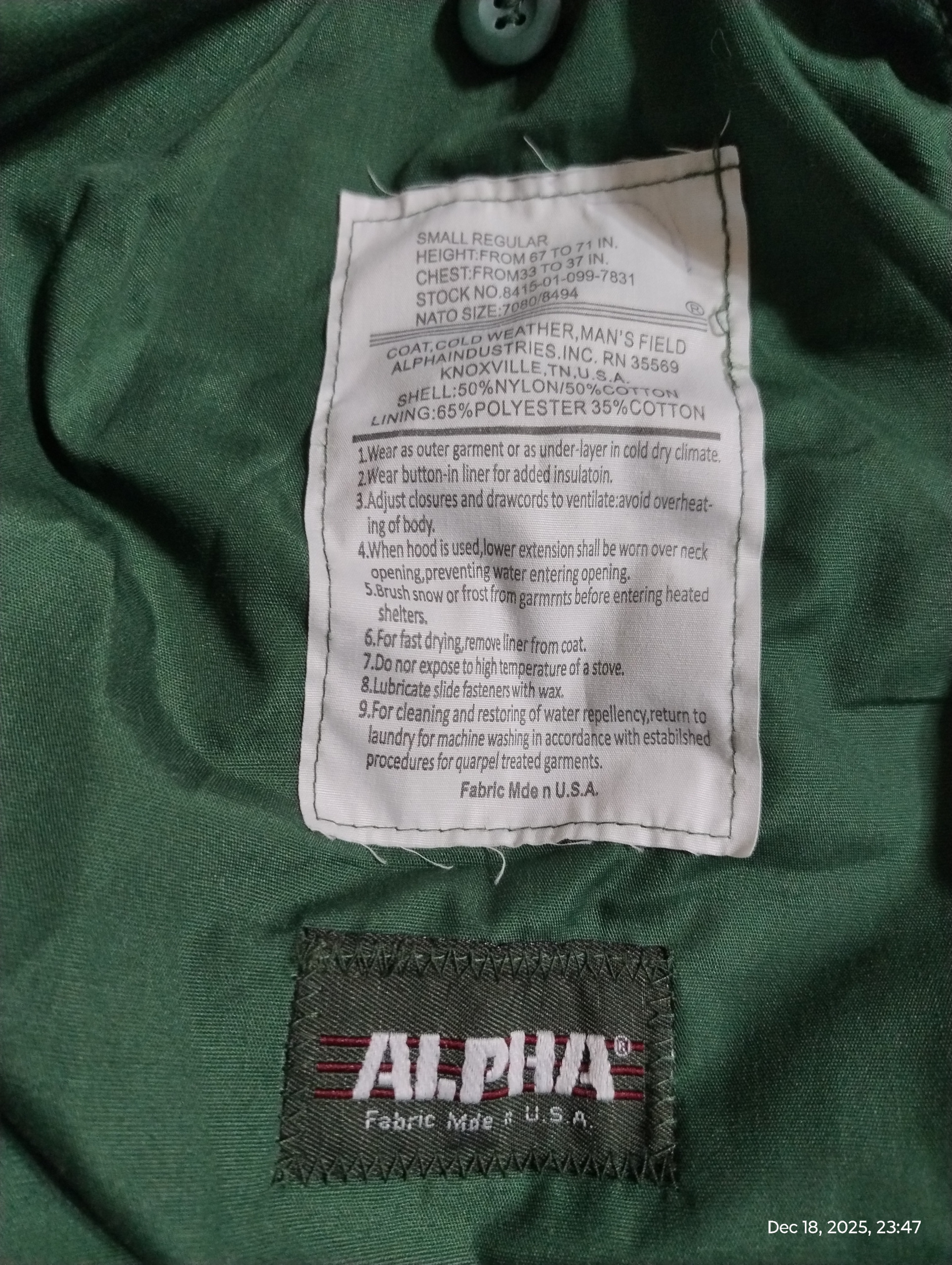 اورکت امریکایی آلفا اصلی تمام ارم دار حتی دکمه ها آکبند سایز اسمال رگولار ( اورکت امریکایی چون قواره بزرگ هست این سایز برای وزن 80 -90 کیلو و عرض شانه 50-52 و قد 180 ) اندازه میشه اورکت سری قدیم هست و خرید الان نبوده و سوغات دو ستان مسافر من بوده ـ یعنی میشه سری بعد از اسکاویل / چون در لیست برند موجود نبود اسپای زده شد / با اورکت های جدید دوخت پاکستان مقایسه نکنید که به نام آلفای اصلی در بازار موجوده / چون یکی دیگه داشتم این استفاده نشد ـ قیمت بالاتر باید باشه فکر میکنم مبارک هر دوستی باشه که میبره