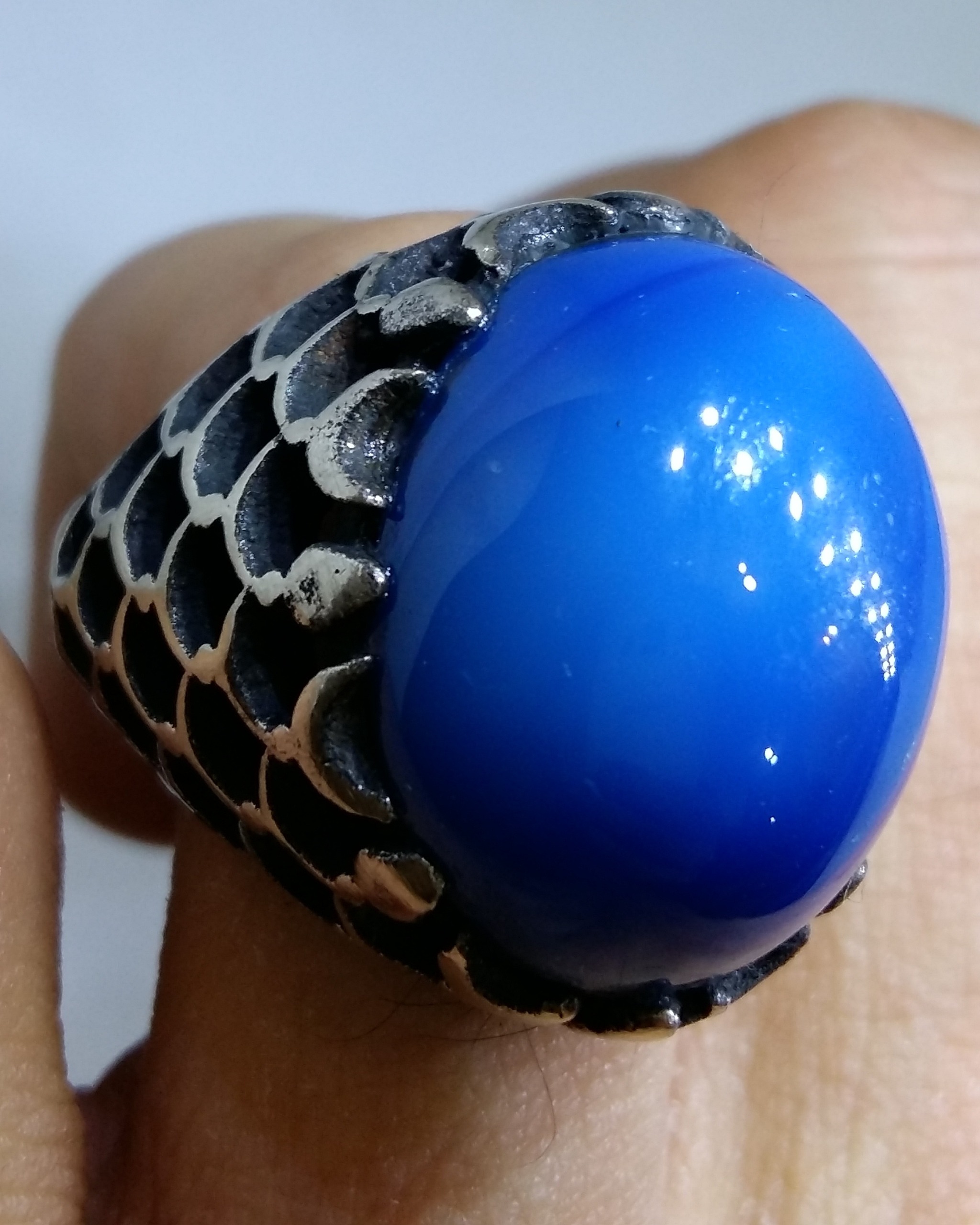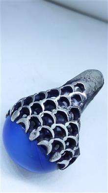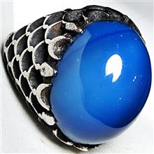 انگشتر پولکی فاخر عقیق آبی کلوخه خوشرنگ برزیلی