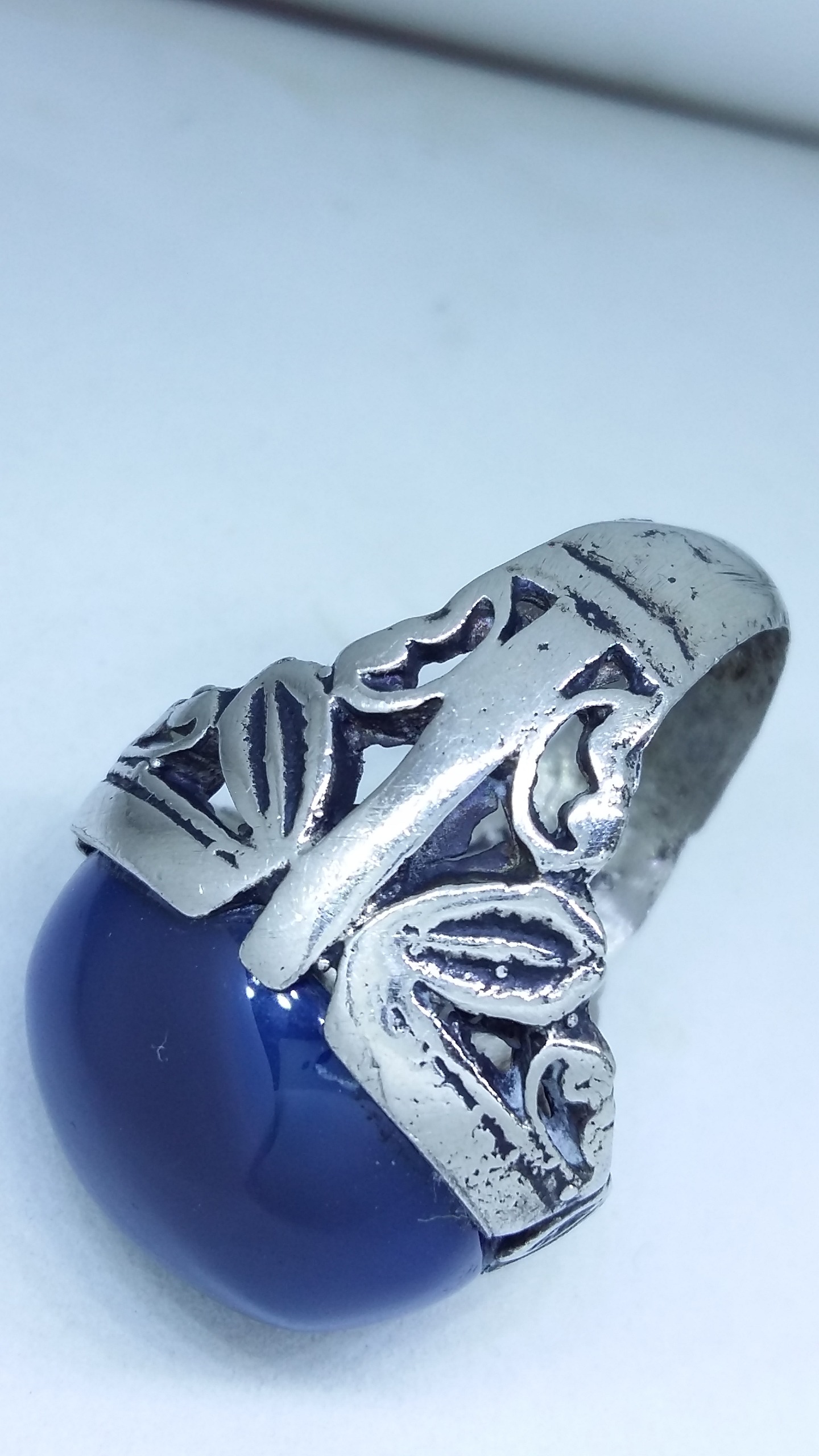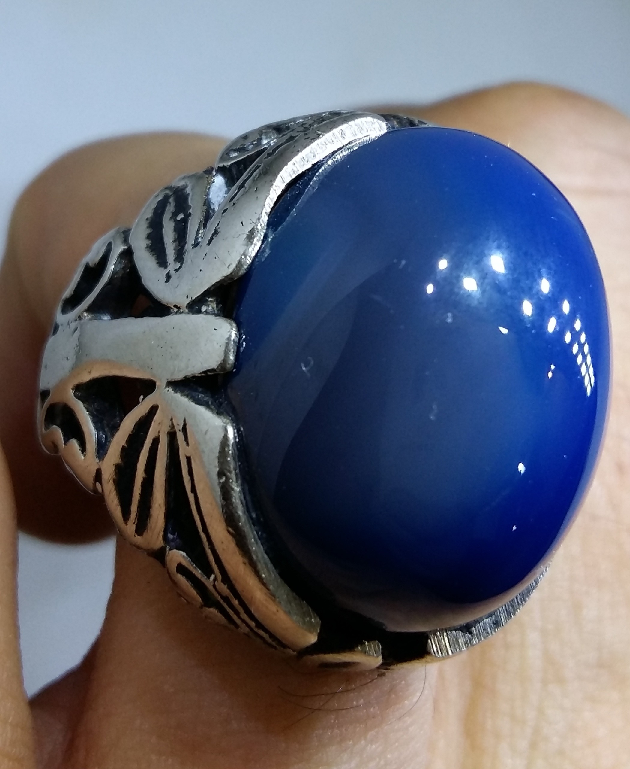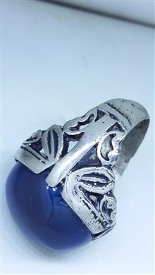 انگشتر اشرافی عقیق آبی کبود خوشرنگ برزیلی