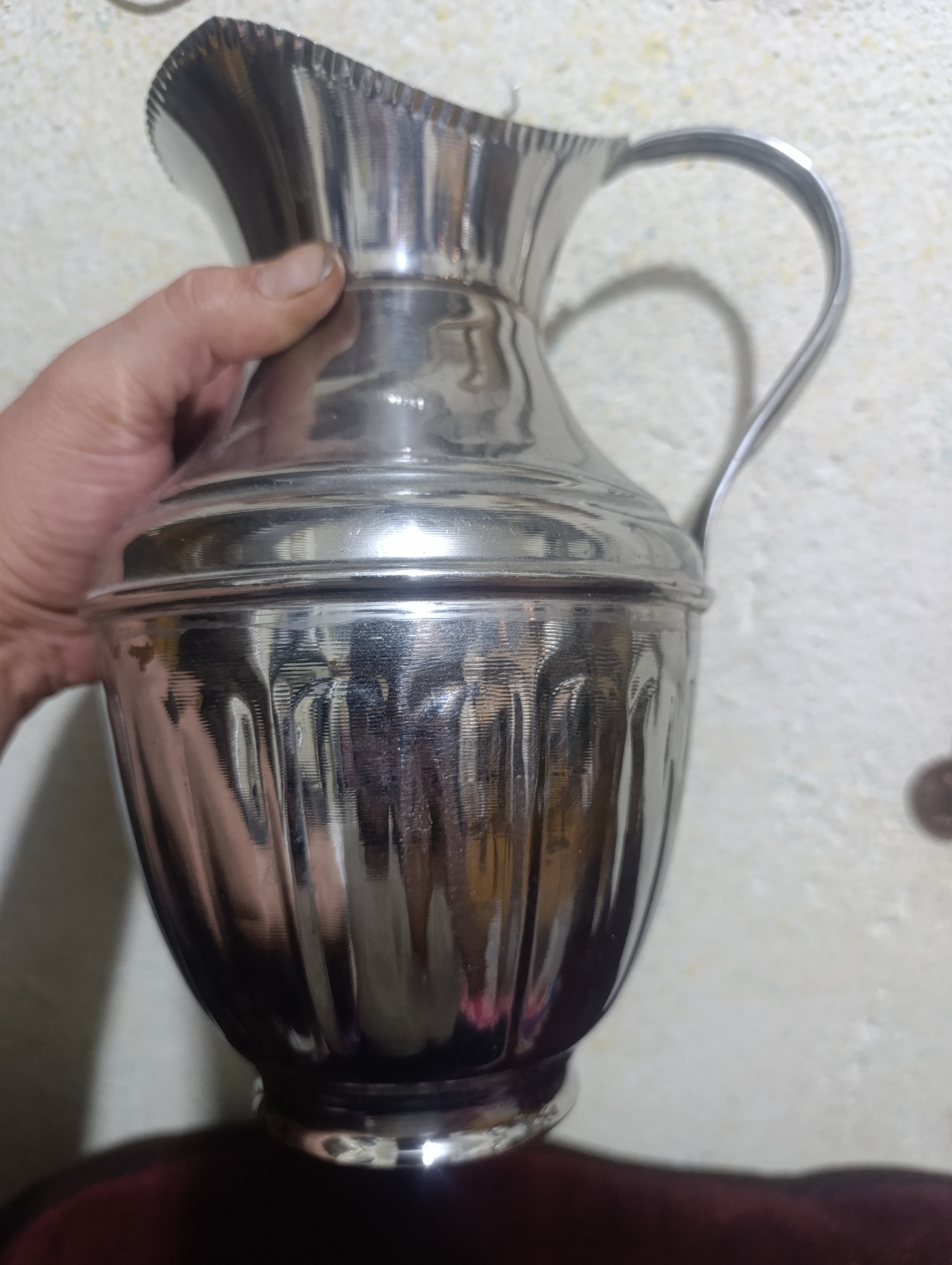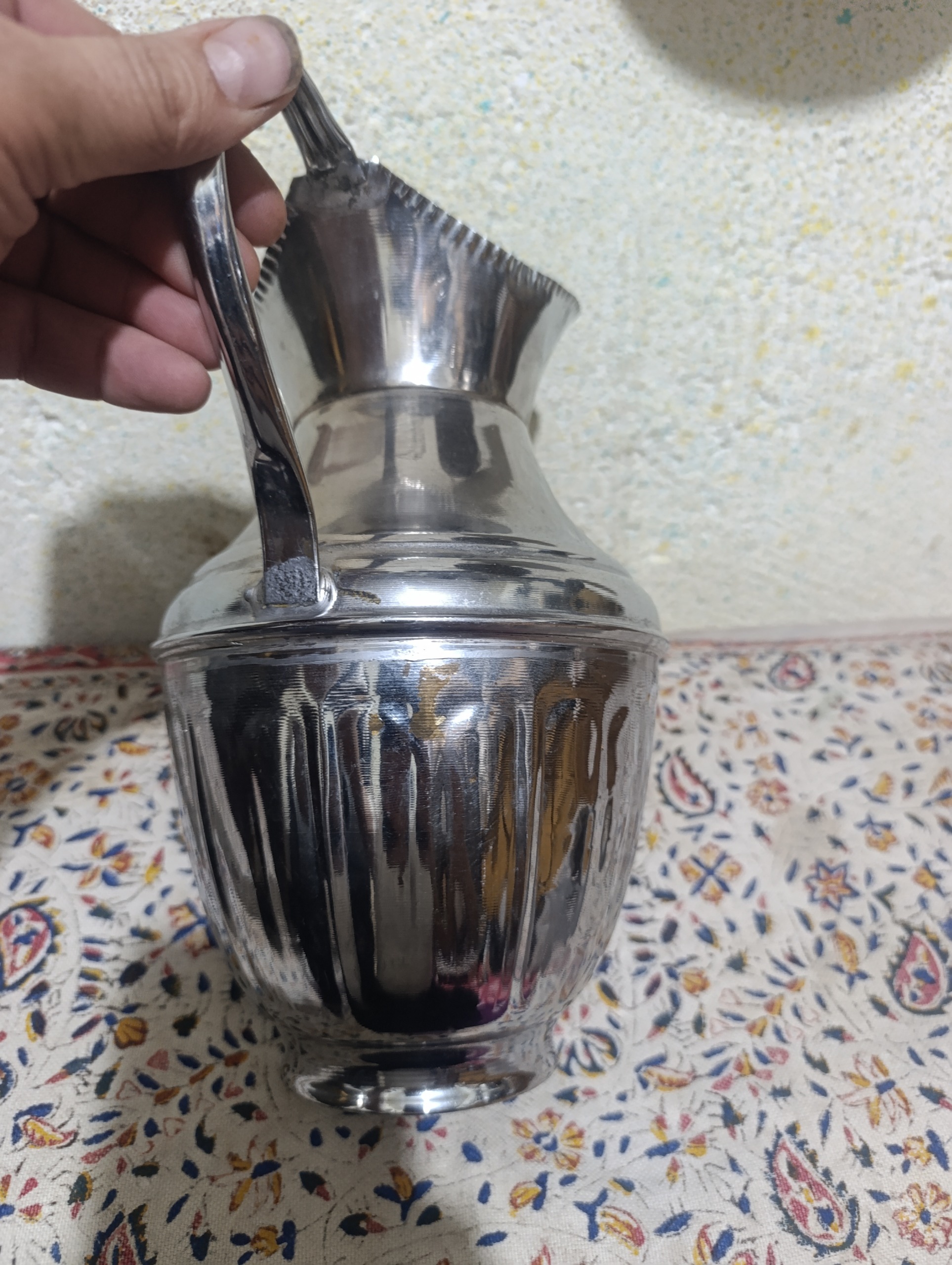 یک عدد پارچ پای سماوری طرح دار جنس برنج یه کار قدیمی و زیبا