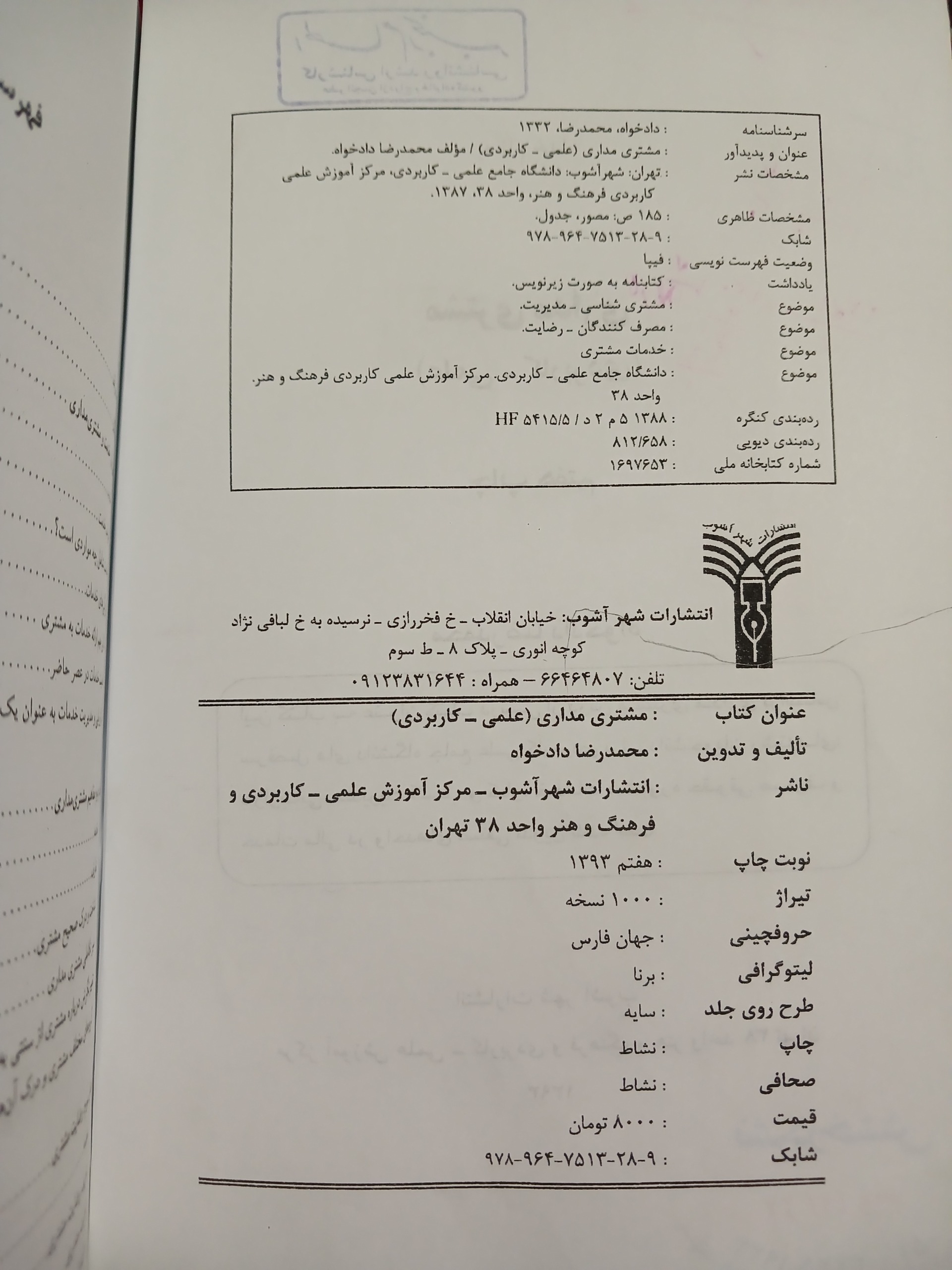 صفحه اول کتاب مهر خوردگی دارد.