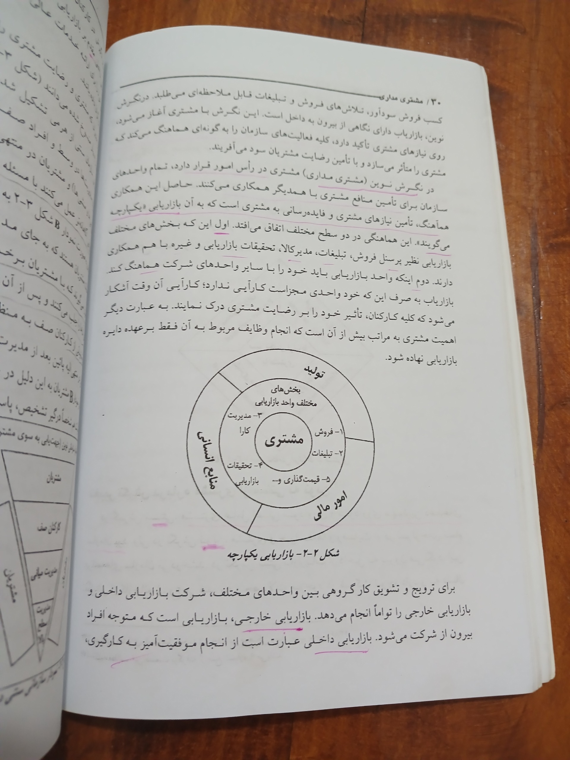 حدود 35 صفحه از کتاب با مداد وخودکار نوشته یا زیر جملات خط شده که تصویر نمونه گذاشته ام