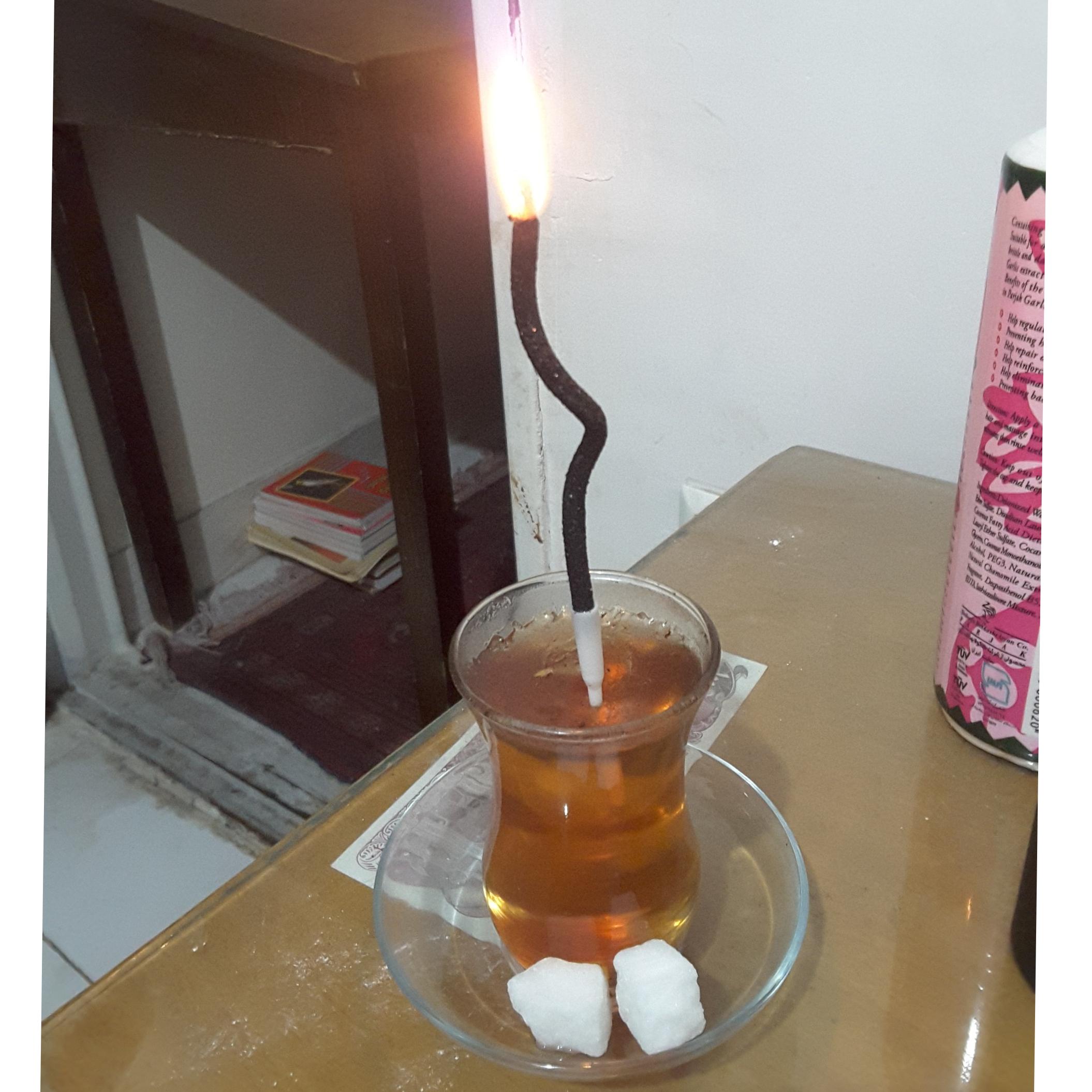 پنج تا شمع مشکی داره اون قسمت پلاستیکی رو فرو میکنی تو استکان چایی
