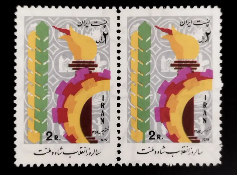 جفت تمبر اصل وکمیاب سالروزانقلاب شاه ومردم