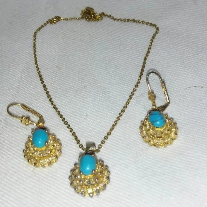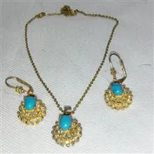 نیم ست رنگ طلایی طرح سنگ فیروزه ای 4تیکه