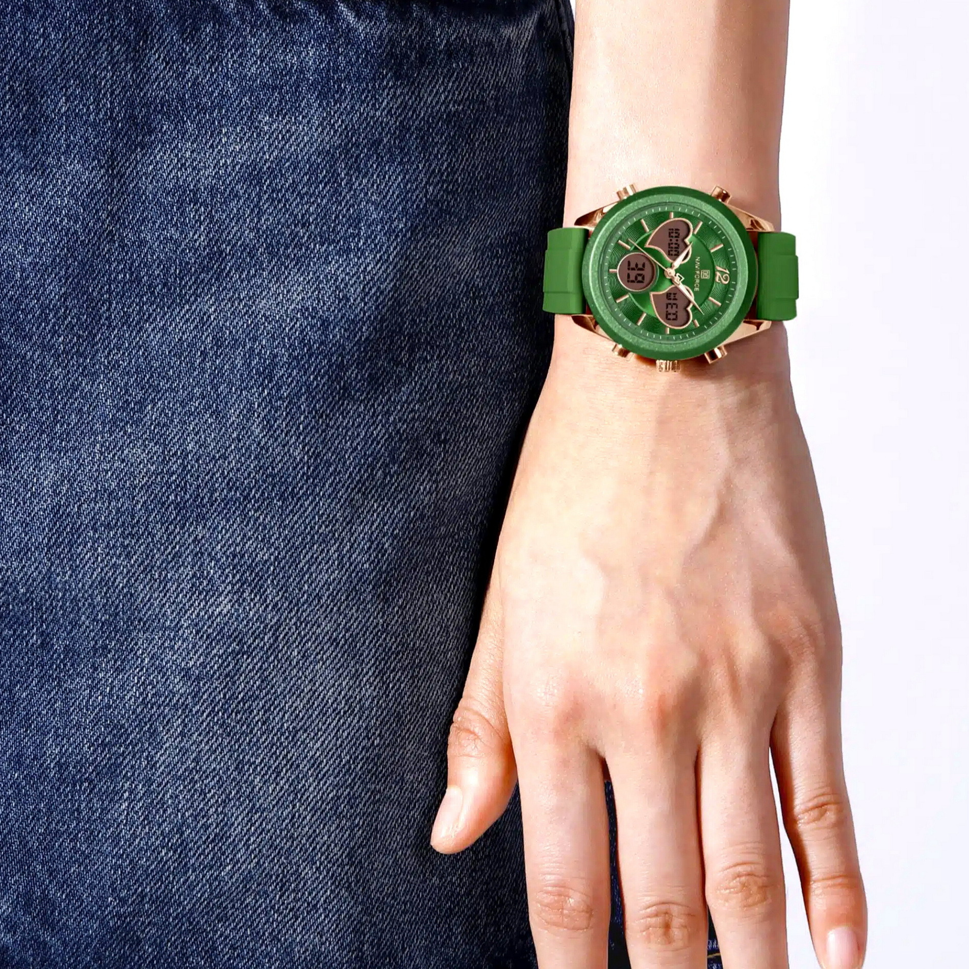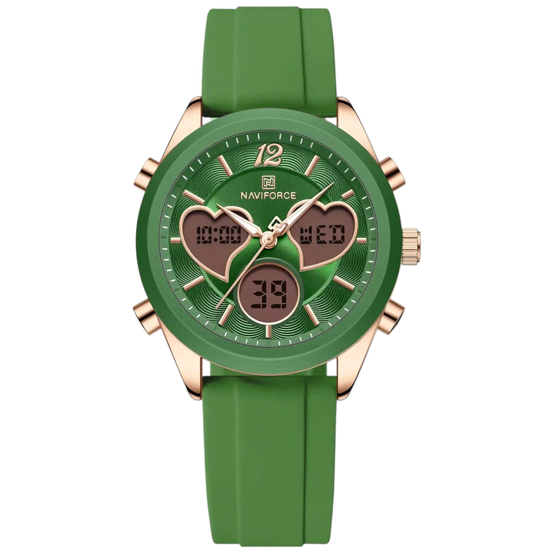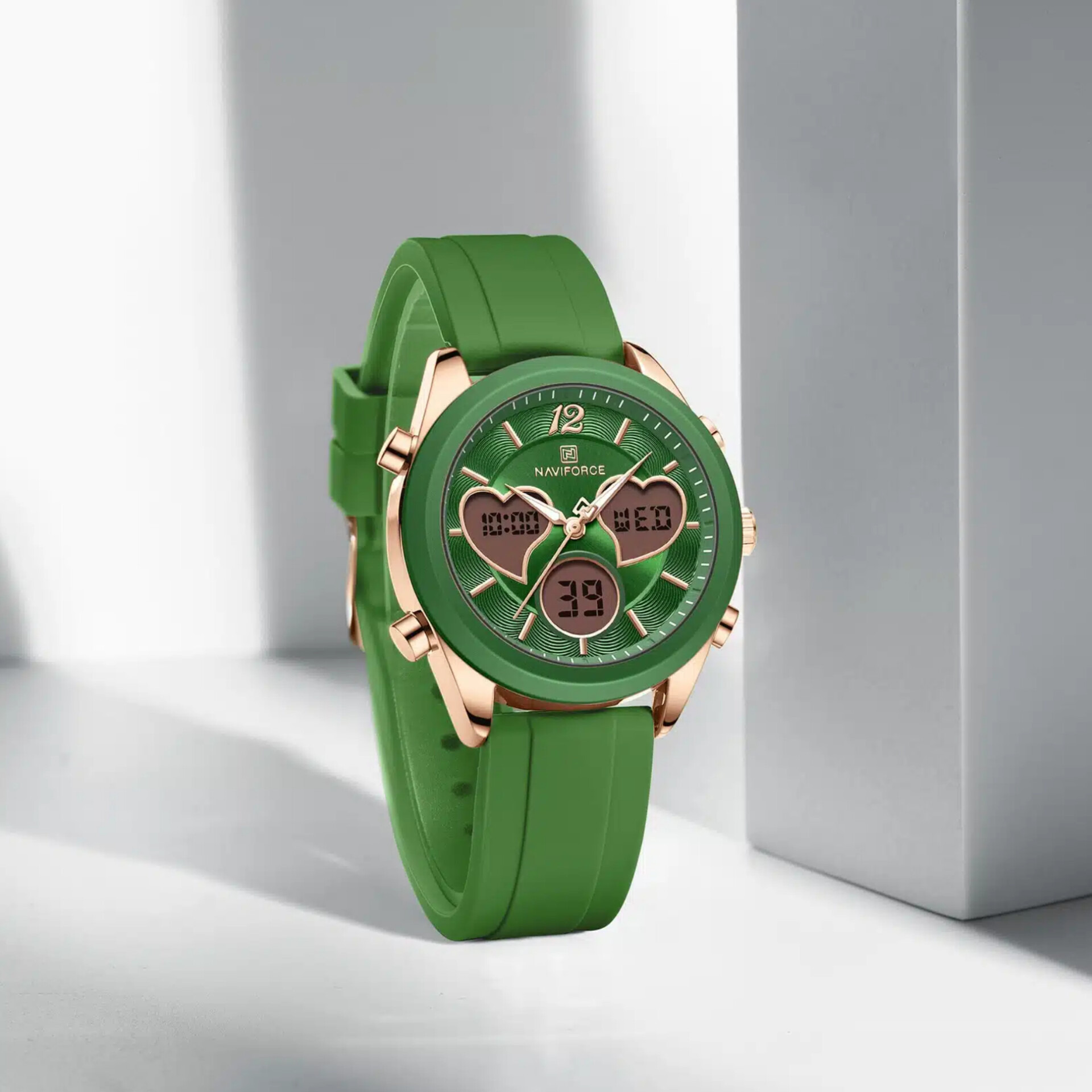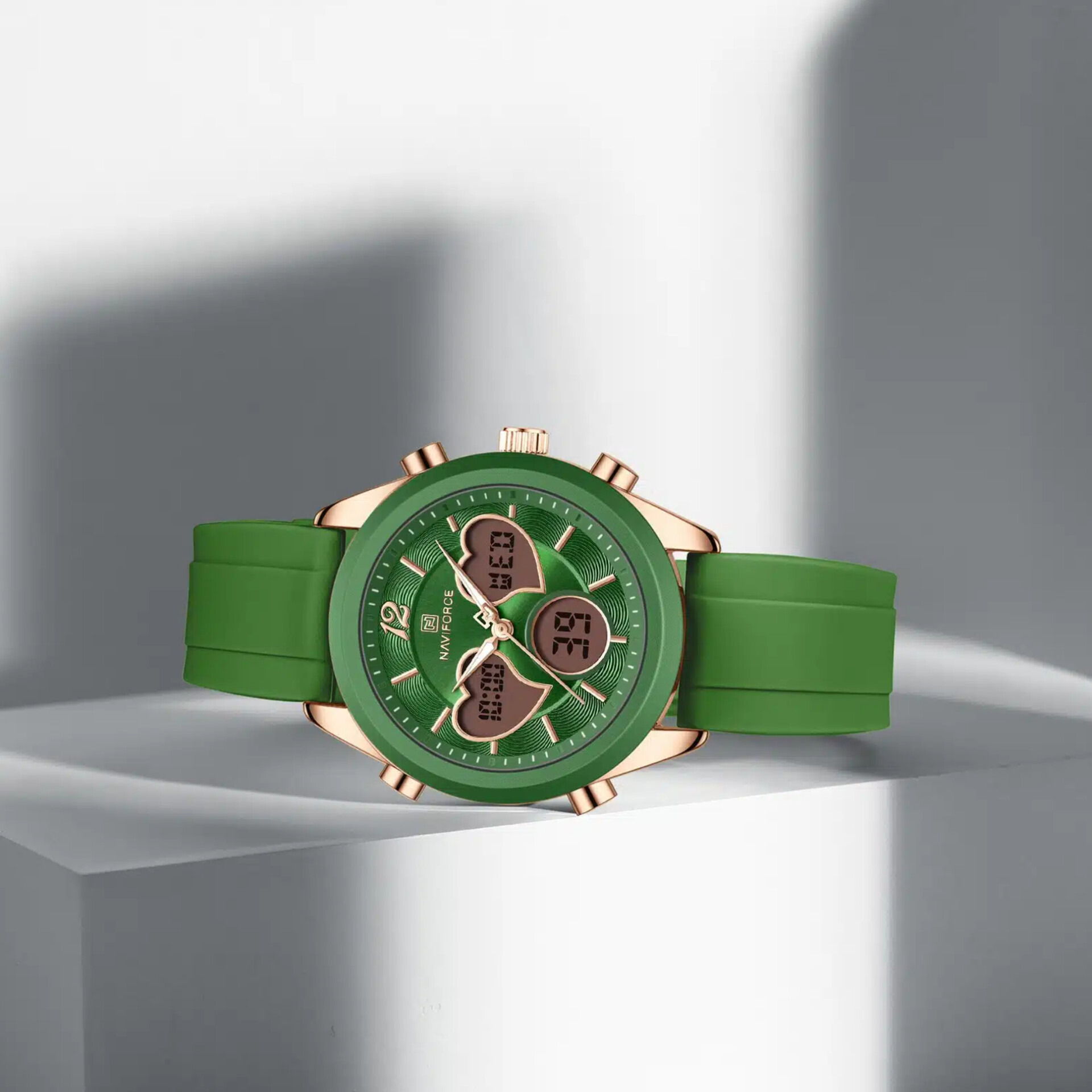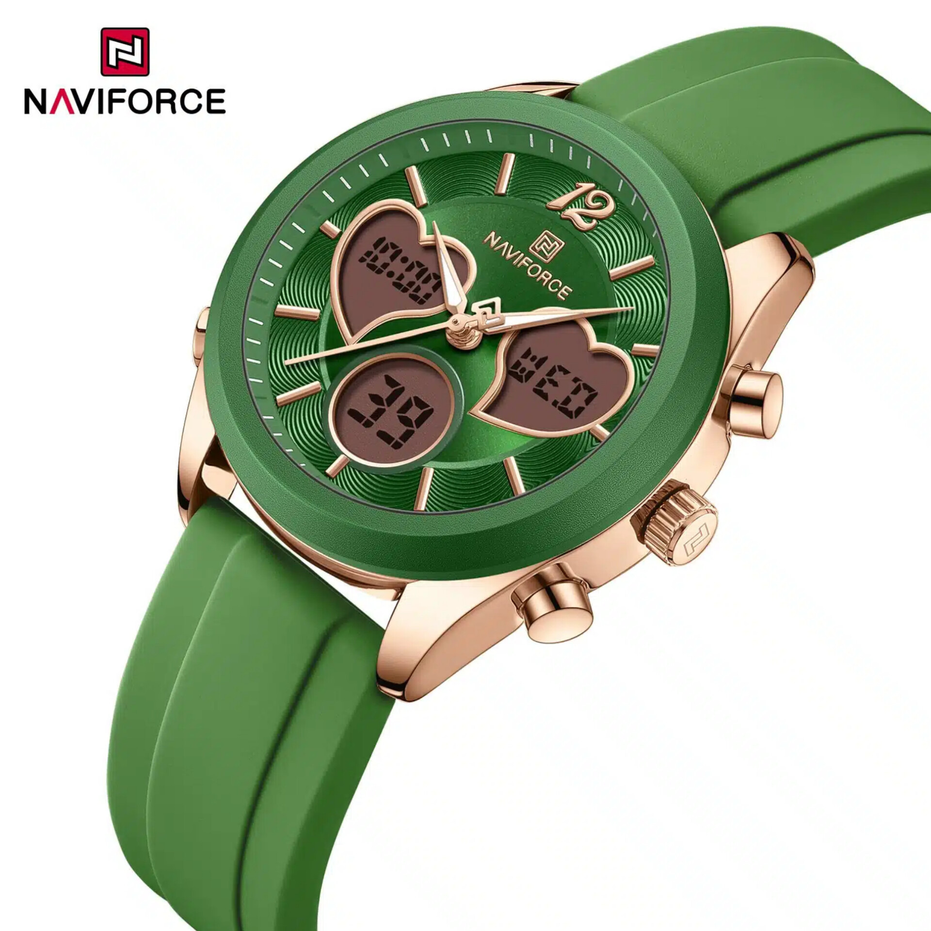 ساعت مچی زنانه نیوی فورس اورجینال دارای دو موتور قدرتمند آنالوگ و دیجیتال با طراحی صفحه فانتزی منحصربفرد